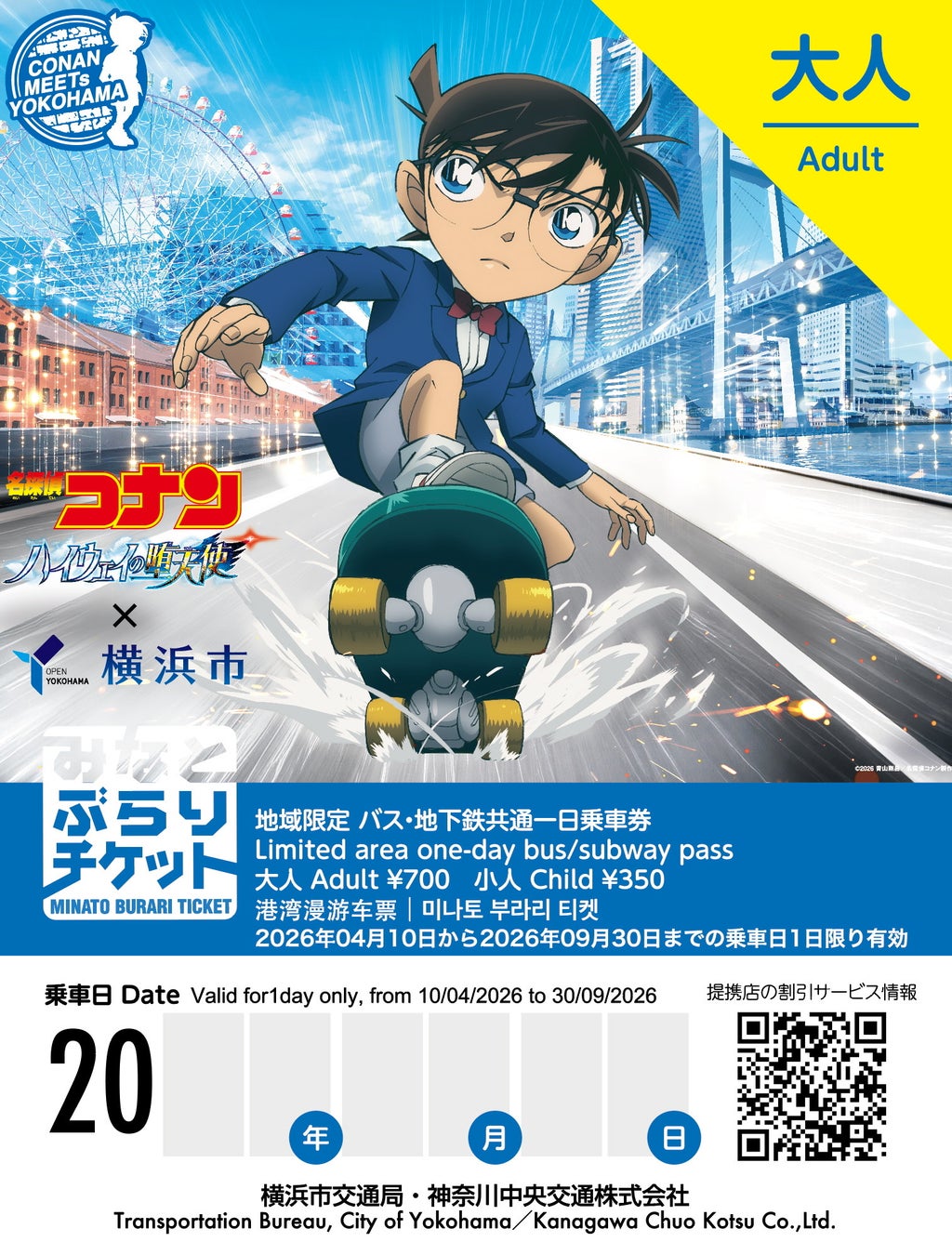 「みなとぶらりチケット」が紙券・デジタル券ともに、劇場版『名探偵コナン ハイウェイの堕天使』×横浜市オリジナル描き下ろしイラストを使用した特別デザインで登場します!