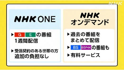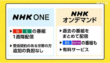 NHKは、改正放送法により「必要的配信」(テレビ・ラジオの同時配信、見逃し・聴き逃し配信、番組関連情報の配信)が必須業務となったことを受け、2025年10月からインターネットサービス「NHK ONE」を開始しました。
