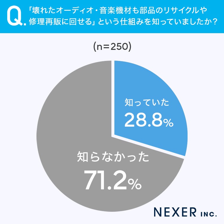さらに約7割が「壊れたオーディオ・音楽機材も部品のリサイクルや修理再販に回せる」という仕組みの存在を知らなかったことも、この差を生む一因といえます。
