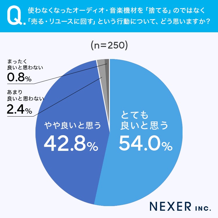 続いて、使わなくなったオーディオ・音楽機材を「捨てる」のではなく「売る・リユースに回す」という行動についてどう思うかを聞いてみました。