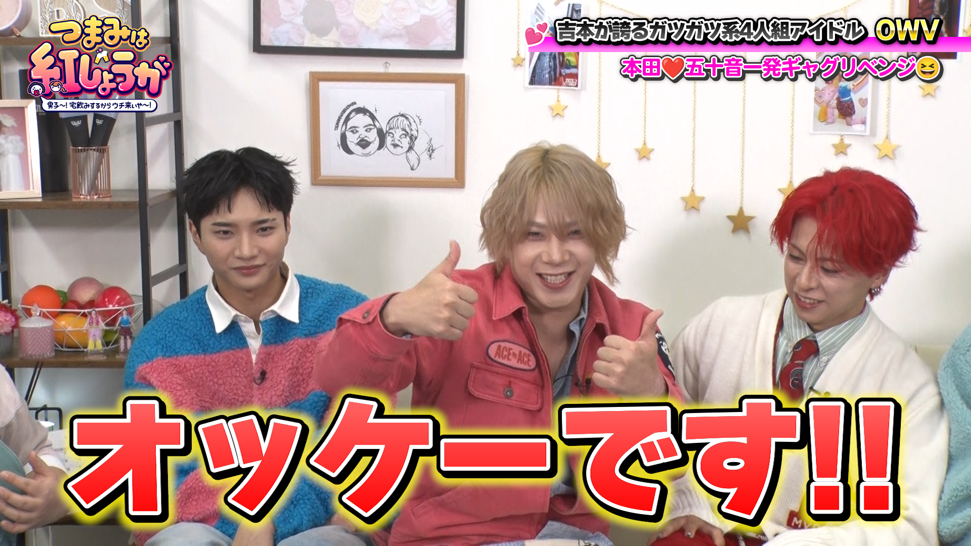 紅しょうがが、“宅飲み”スタイルでステキな男子ゲストと、食べて飲んでトークするBSよしもとの番組『つまみは紅しょうが 男子~!宅飲みするからウチ来ぃや~』(毎月第3・4土曜23:00~)。4月18日(土)の放送回では、これまでに何度か登場しているOWVが、満を持してメンバー4人全員でゲストとして登場します。