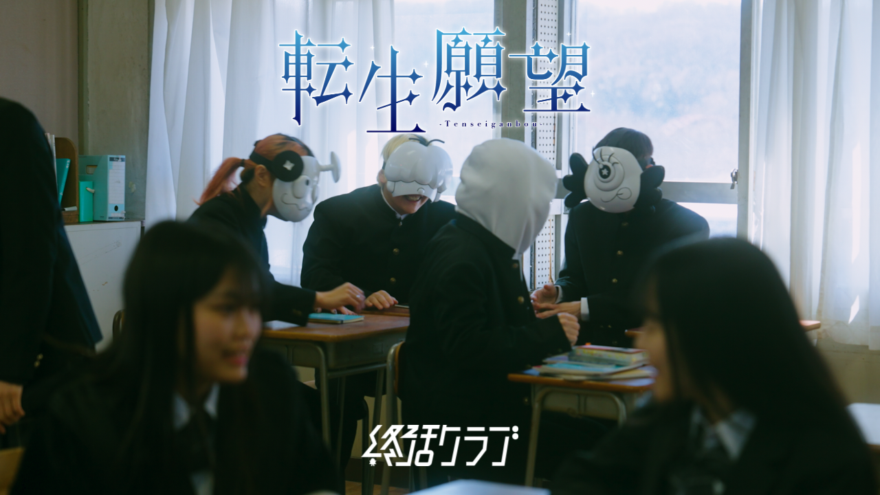 Music Videoは楽曲タイトル「転生願望」の通り、冴えない学生に扮した終活クラブのメンバーが、恋愛を成就させた姿や頭脳明晰な人気者、スポーツ万能な姿などに次々と転生を繰り返すというストーリー。映像は実写やアニメが入り混じったハチャメチャな展開に加えて、ところどころに過去作のMusic Videoの要素も散りばめられており、何度も見返して考察したくなるようなMusic Videoだ。