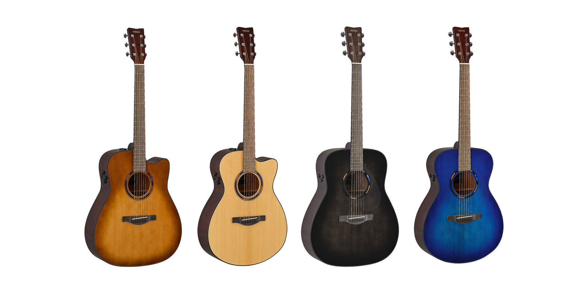 ヤマハ トランスアコースティックギター(左から)『TAG1 C SDB』『TAS1 C NT』『TAG1E TBL』『TAS1E UM』