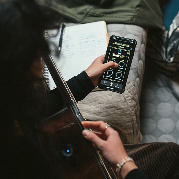 当社は2016年、デジタル技術による機能を備えながら、発音はアコースティック楽器と同じ方式で行う独自技術「TransAcoustic™」を搭載した新しいアコースティックギター「トランスアコースティックギター」を発売しました。弦などの振動を電気信号に変換してエフェクト処理を行い、その信号をギター内部に搭載した「アクチュエーター(加振器)」に伝えることでギター全体を振動させ、実音とエフェクト音が一体となった自然な響きを生み出します。2024年には、性能・機能を進化させた第2世代モデル「TAG3 C」を発売。今までにない新しい演奏体験を提供する新たなアコースティックギターとして好評を博しています。