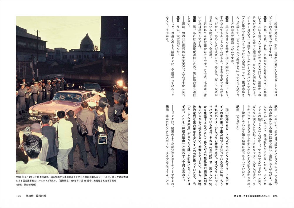 本書は、1966年初夏ビートルズ来日時に彼らと接したさまざまな立場の人々のインタヴュー集。登場するのは、4人が日本に向かう日航機にあえて同乗した会社員から、武道館公演をTV放送した日本テレビのディレクター、移動に使われたキャデラックの運転手、滞在した東京ヒルトンホテルのスタッフ、さらにはビートルズが購入した古美術店スタッフなど。膨大な知識に裏打ちされた評論活動が「ビートルズ大学」として浸透している音楽評論家・宮永正隆が、4人の素の姿を浮き彫りにし、ビートルズが日本にいた5日間の細部を次々と明らかにしていきます。