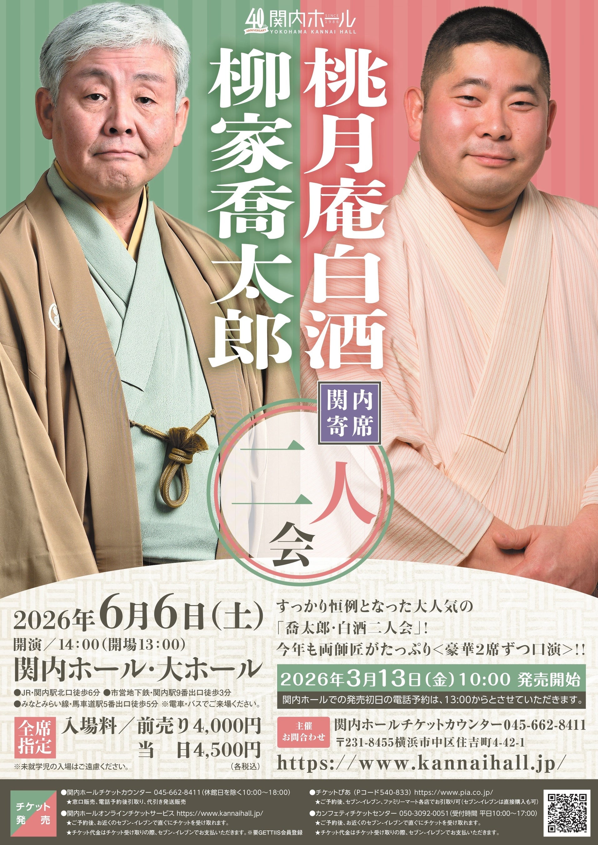 ◆公演名 関内寄席 柳家喬太郎・桃月庵白酒 二人会