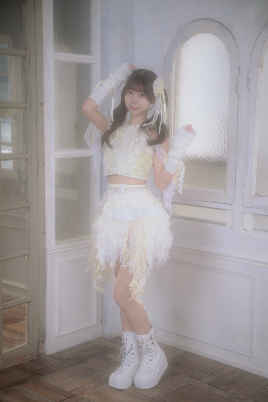 メンバー・新居歩美「先月から所属をツインプラネットに移籍し、4年目まだまだ晴天快晴を目指して進むドラマチックレコードから目を離さないでね♡」