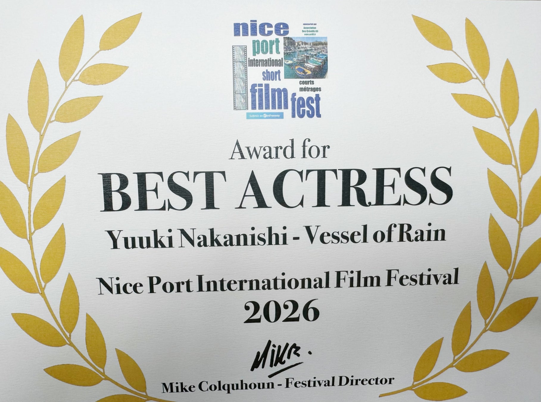 中西悠綺 Nice Port Short Film Festivalにて最優秀主演女優賞を受賞