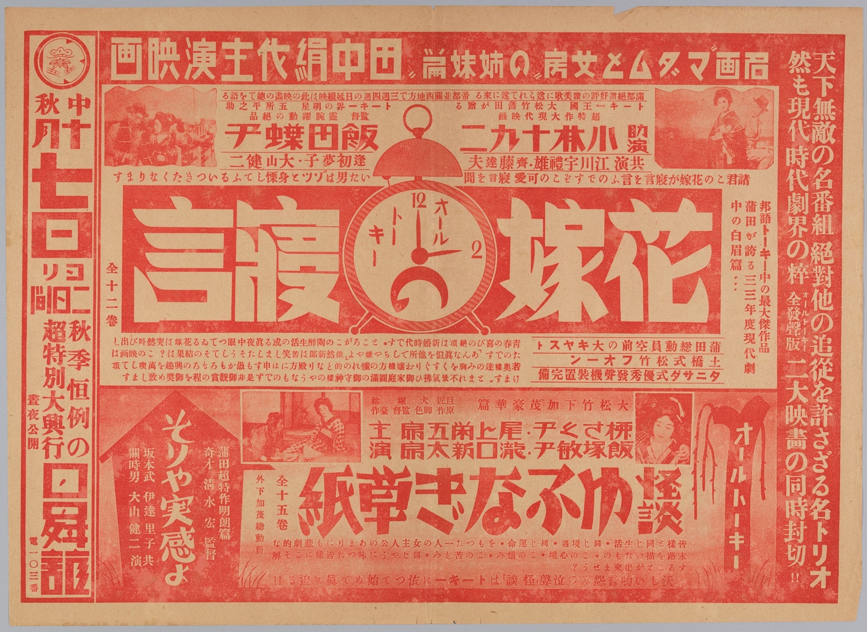 「恋愛」という翻訳語が生まれた明治期以来、知識人の間で「新しい思想」として論じられた恋愛は、昭和初期にかけて、より広い人々の日常生活へと浸透していきました。ほぼ同時期、 日本映画は、トーキーの採用などの大きな革新を経ながら産業として発展し、「千変万化する恋」をスクリーンに映し出してきました。