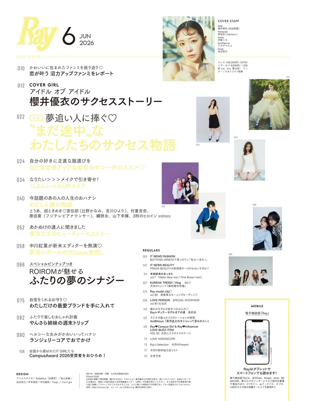 『Ray』2026年6月号は4月23日(木)発売!通常版表紙は専属モデルの櫻井優衣(FRUITS ZIPPER)、特別版表紙は『Ray』初登場のROIROM!