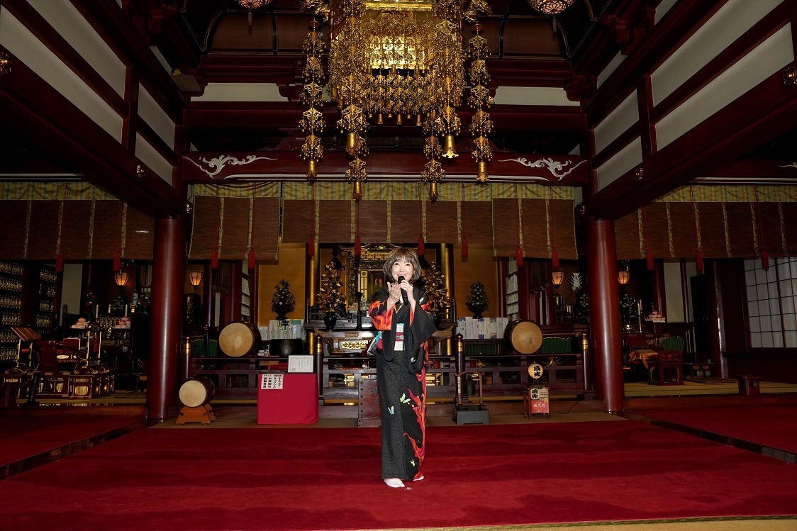 「これまでに様々な歌と出合ってきた中で、この35周年という節目にこちらのお寺に来させていただいたことがきっかけで、今日は〝新生・田川寿美〟になったような気分です。いまの時代は本当に複雑で、情報過多で、生きるのが難しいなと感じている方もたくさんいらっしゃると思います。でも、それぞれが胸の中に、メラメラと燃える炎ではなくて、白黒はっきりつけるでもなく、曖昧な境界線でも生きていけるというほのかな炎のようなものをそれぞれみんなが持ち続けるきっかけになればいいなと。そうすると、これまで見えていた景色が変わってくるのではないかなと思いました。この『いのち陽炎』が、そのきっかけになれば幸いです」