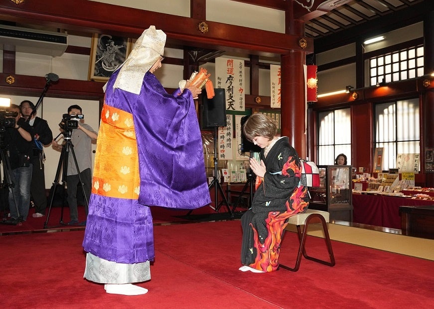 そんな新曲の発売にちなんで、陽炎を神格化した守護神「摩利支天(まりしてん)」を祀り、開運・厄除け・必勝祈願の最強パワースポットとして知られる同寺の本堂でヒット祈願を行い、合わせて新曲を歌唱奉納。
