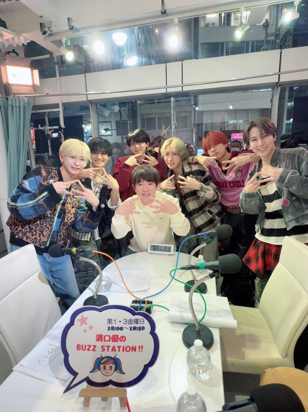 メンバーはYU-KI、YURI、EK、RAKU、TAKERU、AMANEの6名。番組の初回ゲストとして、公開生放送ならではの緊張感とライブ感のある空気の中、「濱口優のBUZZ STATION」のスタートを盛り上げました。