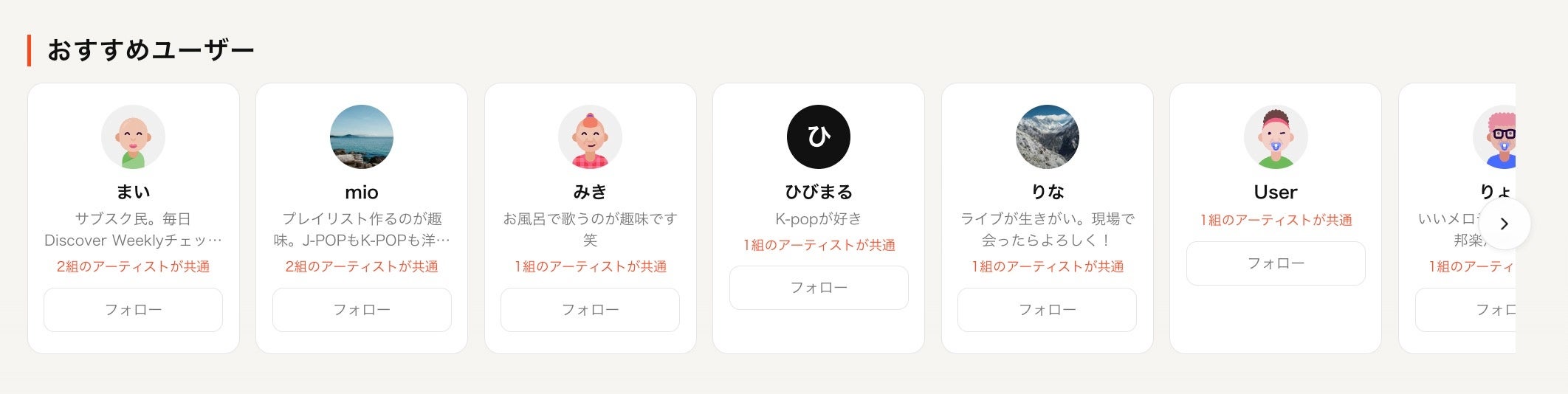 フォロー・タイムラインで、趣味の合うリスナーと出会えます。レビューやプレイリストを共有して、一人では出会えない音楽を発見。