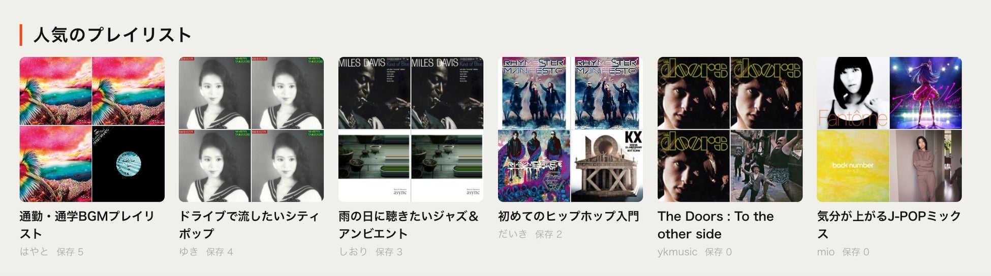 テーマ別のプレイリストを作成・公開。「雨の日に聴きたい10曲」「通勤中のテンション爆上げリスト」など、あなたのセンスを発信できます。