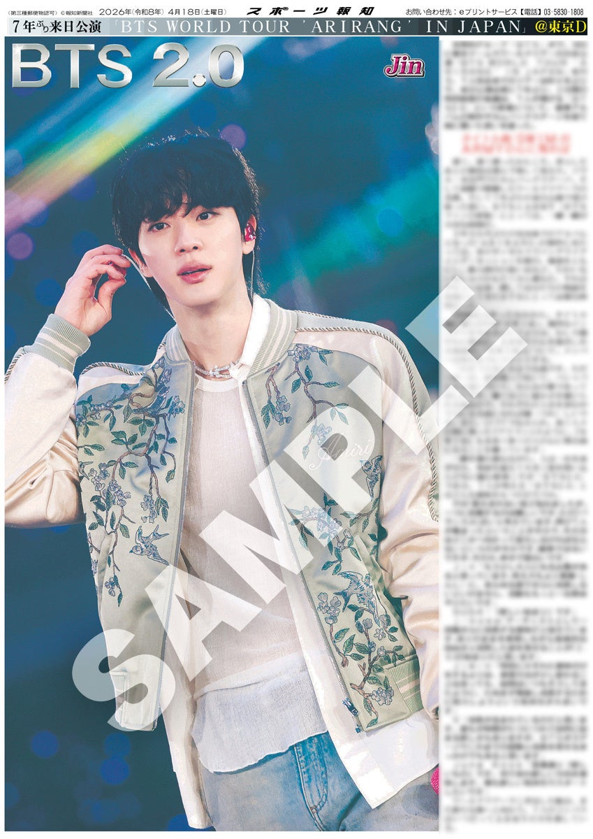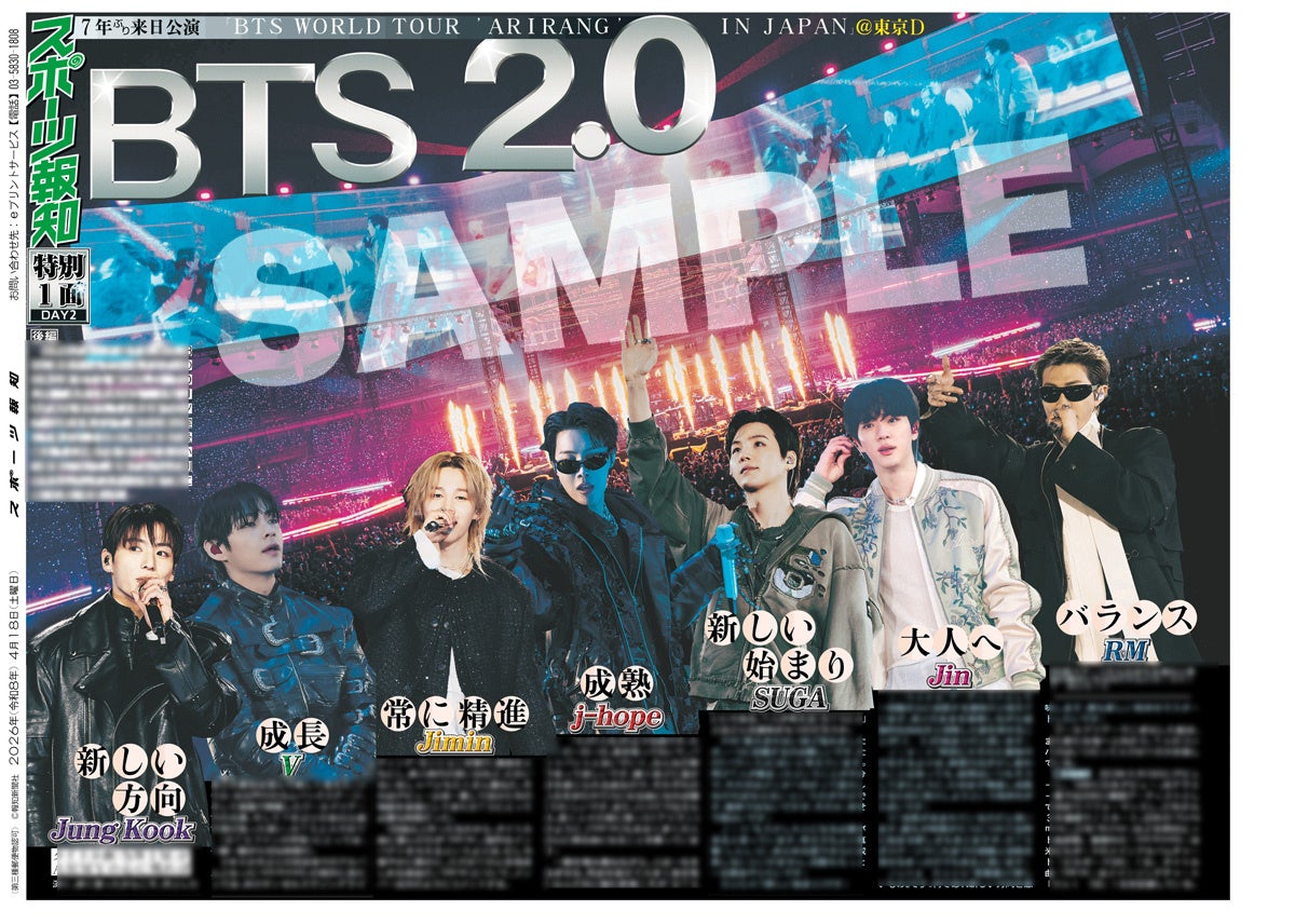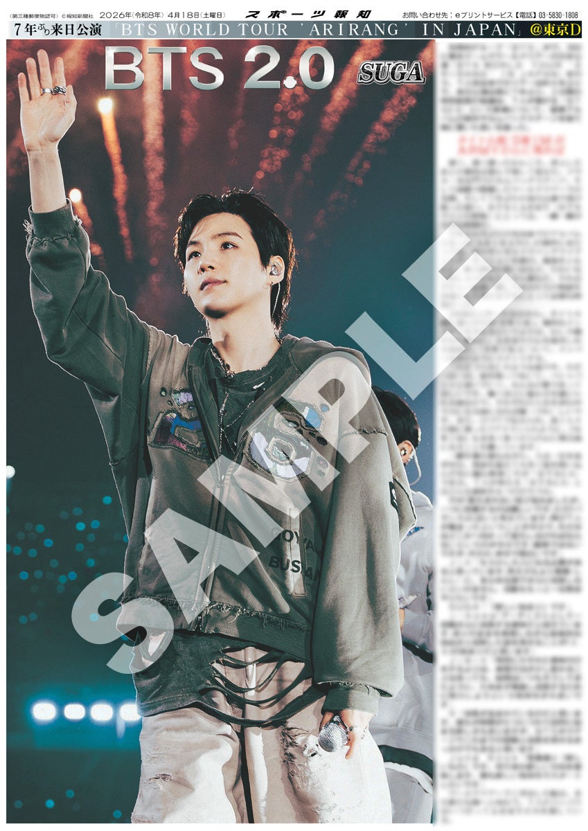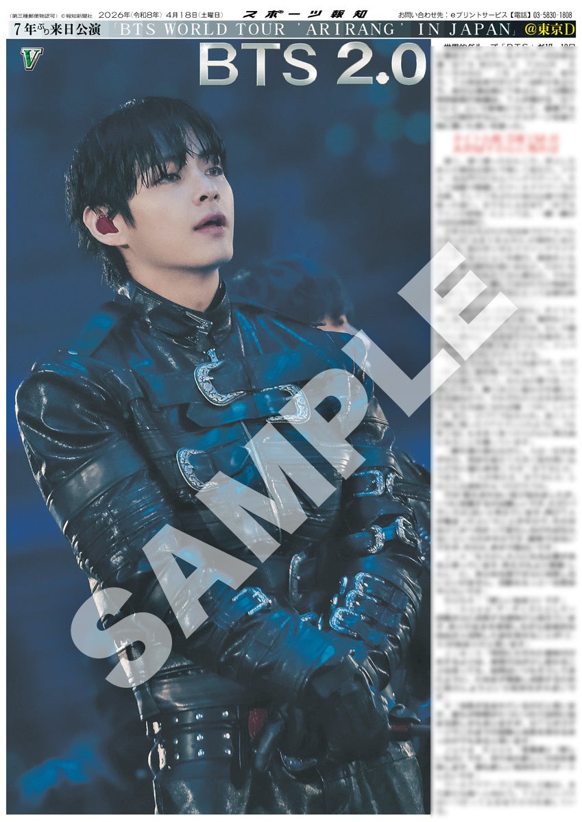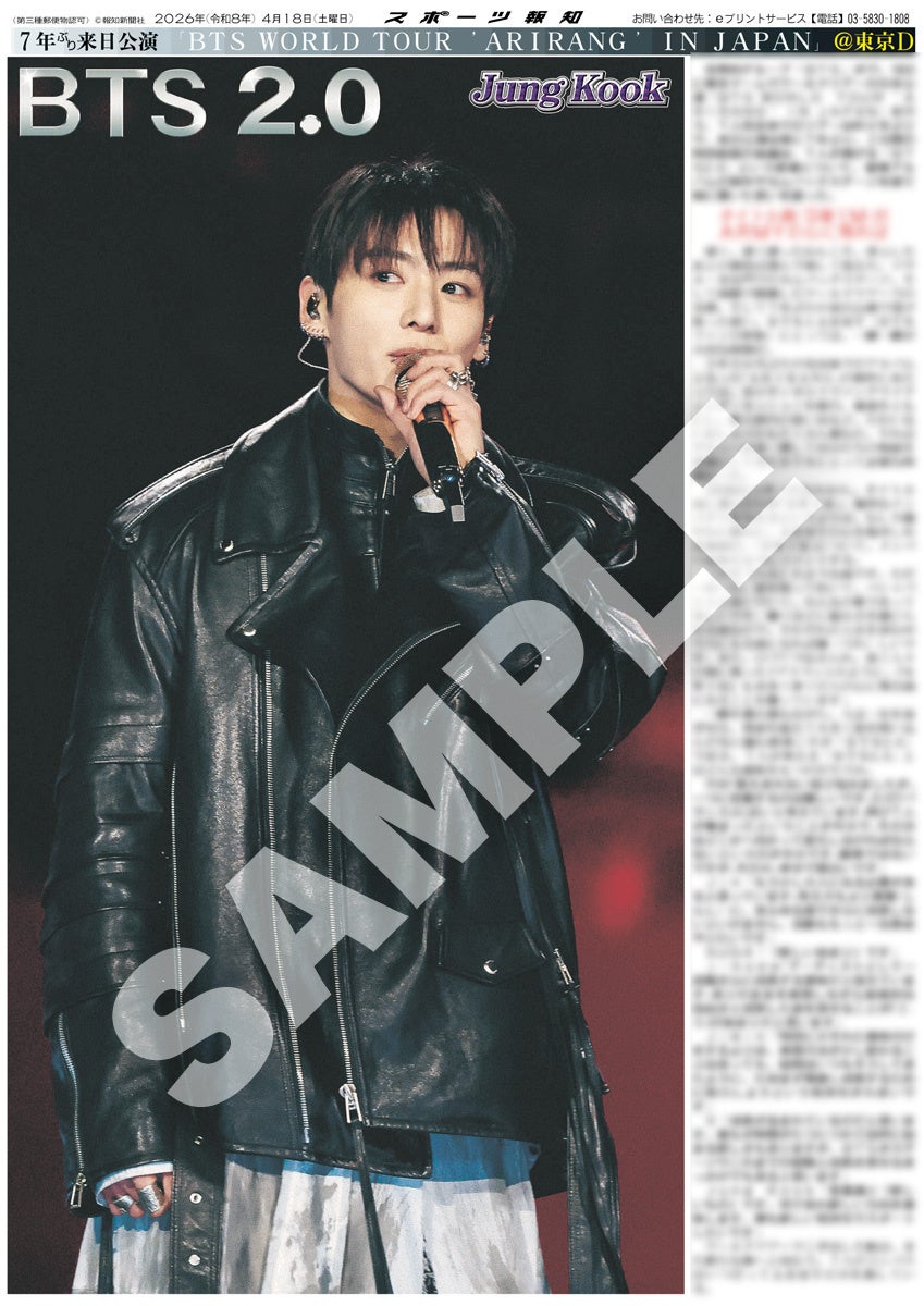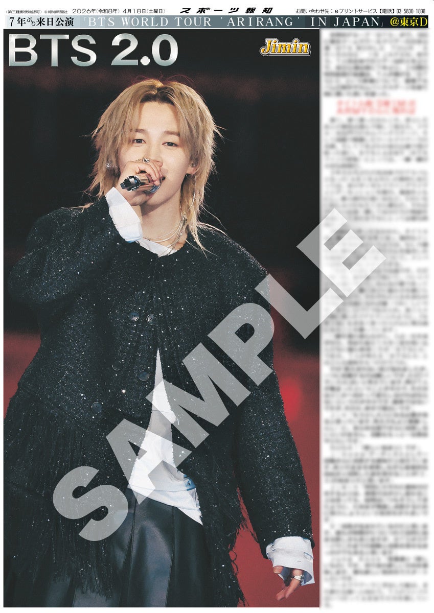 スポーツ報知を発行する報知新聞社(代表取締役社長・長谷川剛)は新聞の一部紙面をコンビニエンスストアのマルチコピー機からプリントできる「スポーツ報知コンビニプリント」サービスを展開中。スポーツ紙ならではの大きな写真を使った紙面をプリント版として販売しています。4月17日、18日に東京ドーム周辺で発売、7人完全体での活動を再開した世界的グループ「BTS」のワールドツアー日本公演を記念した「BTS特別1面新聞」のコンビニプリントを発売中です。合計9種類になります。