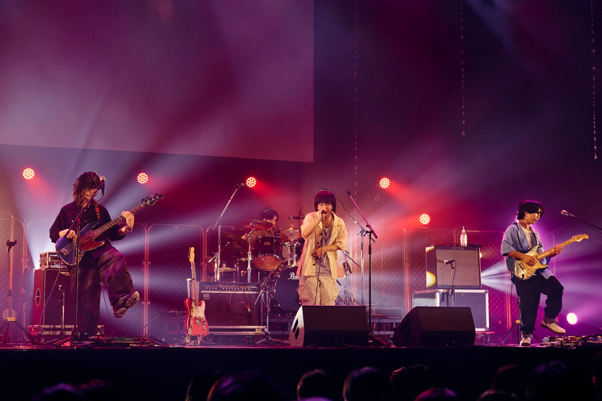 続いて登場したのは、2024年5月、音楽学校の同級生4人で結成されたオルタナティブ・ポップロックバンド クレイジーウォウウォ!! です。彼らの楽曲「トンツカタンタン」は、SNS総視聴回数20億回超えや、TikTok音楽チャート Viral 50・TOP50(2/20~3/13)では4週連続1位を記録するなど現在バイラルヒット中。各地のサーキットライブでも入場規制が連発となるなど、楽曲・ライブ共に大注目のバンドが「トンツカタンタン」を含む3曲を演奏しました。