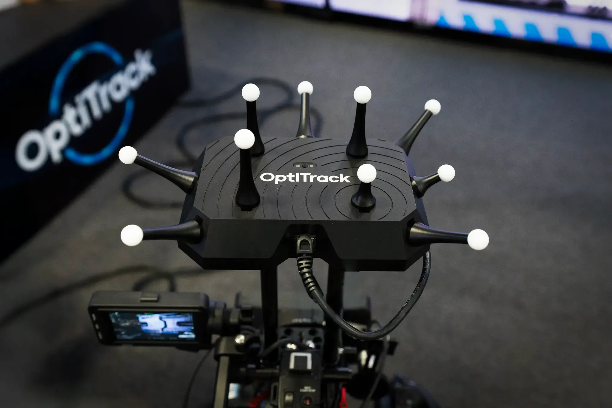 カメラのトラッキングは、光学式のモーションキャプチャシステムOptiTrack(オプティトラック)を使用。カメラの上に取り付けられたOptiTrack Wired CinePuckの位置トラッキング(光学式+IMU融合)とレンズメタデータをRigFXハブでリアルタイムに統合します。システムはOpenTrackIOを介して統合されたデータを出力し、レンダリングエンジンで直接使用しています。これにより、安定したトラッキング、低遅延、そして一貫性のある結果が保証されます。