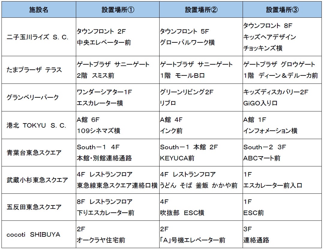 二子玉川ライズ S.C.、港北 TOKYU S.C.、武蔵小杉東急スクエア、
