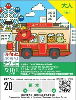 新横浜駅と都心臨海部の横浜駅、桜木町駅間を乗換えなしで移動できる横浜市営地下鉄と、ベイエリア周辺の横浜市営バス・神奈中バスが利用できる便利でお得な1日乗車券「みなとぶらりチケットワイド」。昨年に引き続き、都心臨海部の観光地を巡る観光スポット周遊バス「あかいくつ」とTBがコラボした特別デザインを、数量限定で販売します!