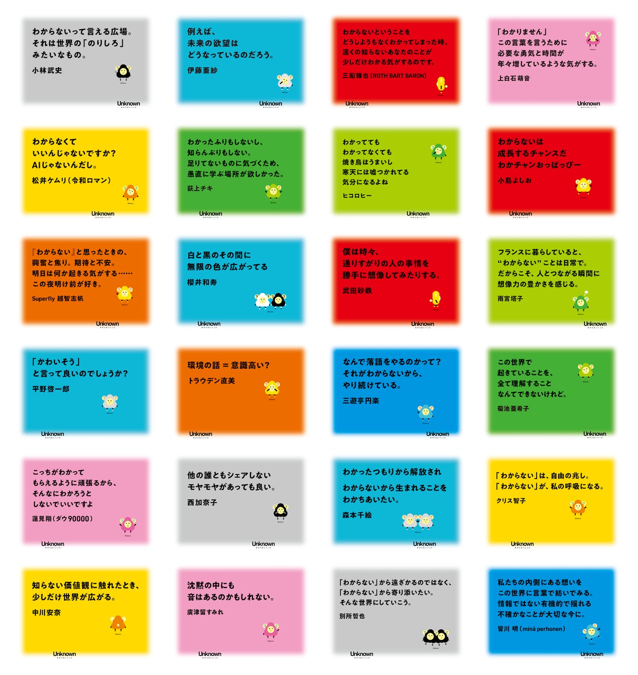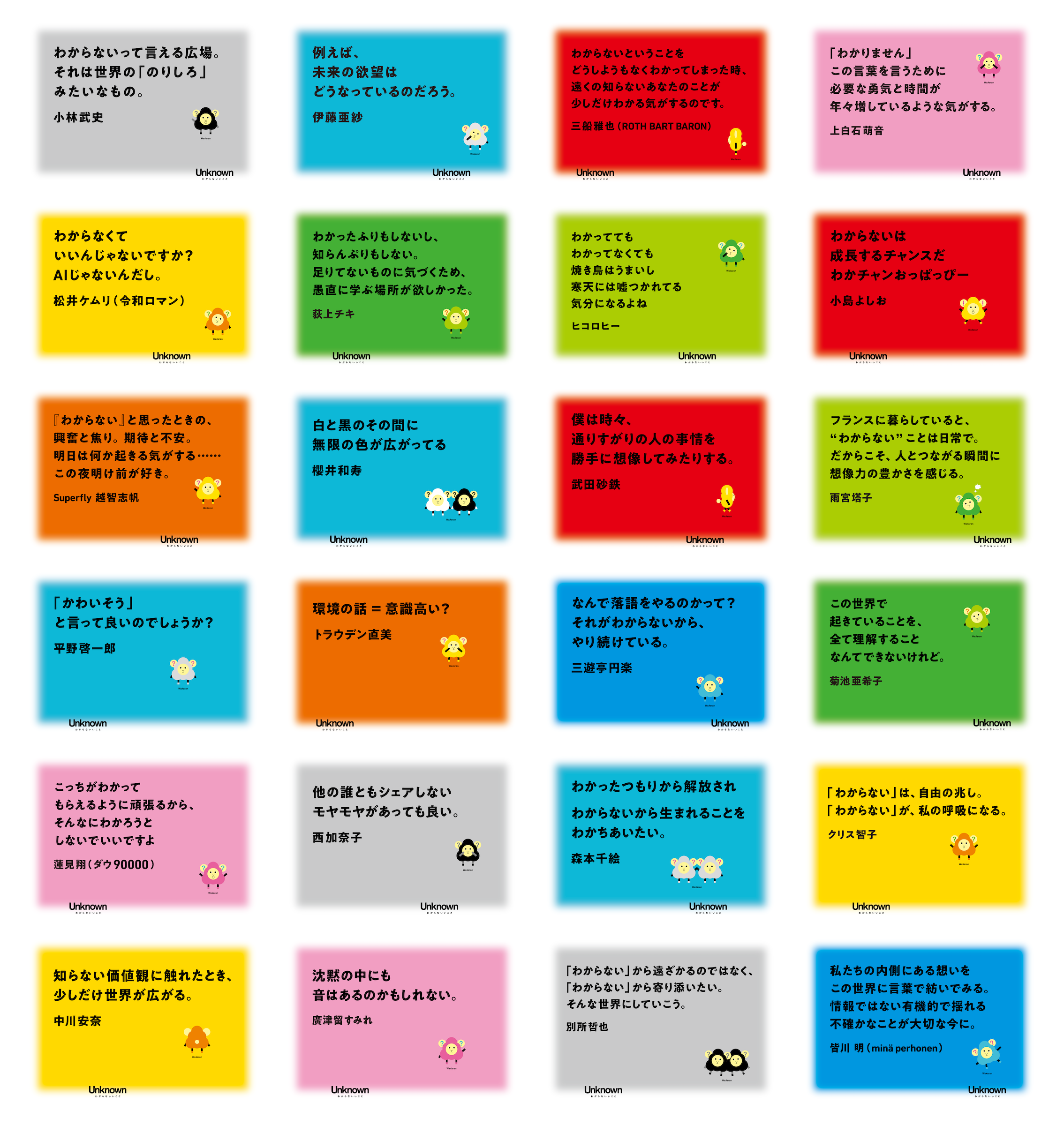 「Unknown」の趣旨に賛同して集まった各番組の出演者から、「わからないいこと」をお題にメッセージを集めました。
