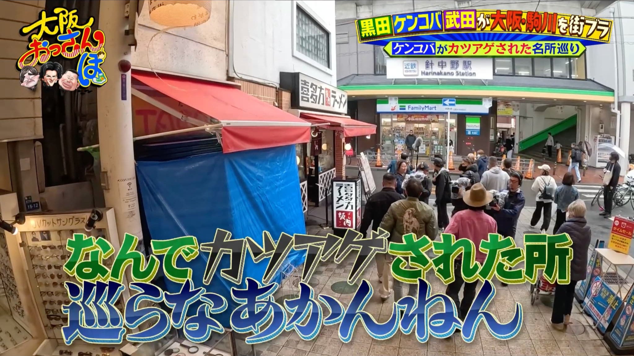 今回は、メッセンジャー黒田、武田真治、ケンドーコバヤシが大阪・駒川~長居エリアをおっさんぽ。賑やかな商店街が並び、今も下町情緒が残る活気ある街で、駒川はケンドーコバヤシの地元でもある。