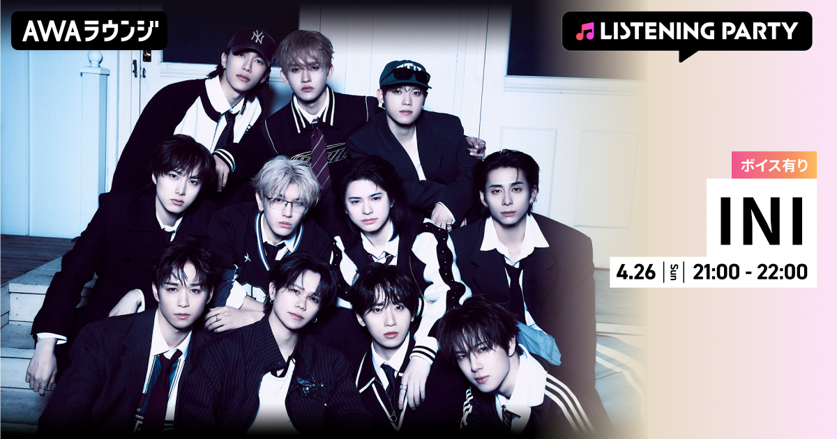 AWA株式会社(本社:東京都港区、代表取締役CEO:冨樫晃己)が運営する、サブスクリプション型(定額制)音楽ストリーミングサービス「AWA(アワ)」は、2026年4月26日(日) 21:00~22:00の1時間に渡り、無料で誰でも参加できるオンライン空間「ラウンジ」で、INIを特集したリスニングパーティーを開催いたします。
