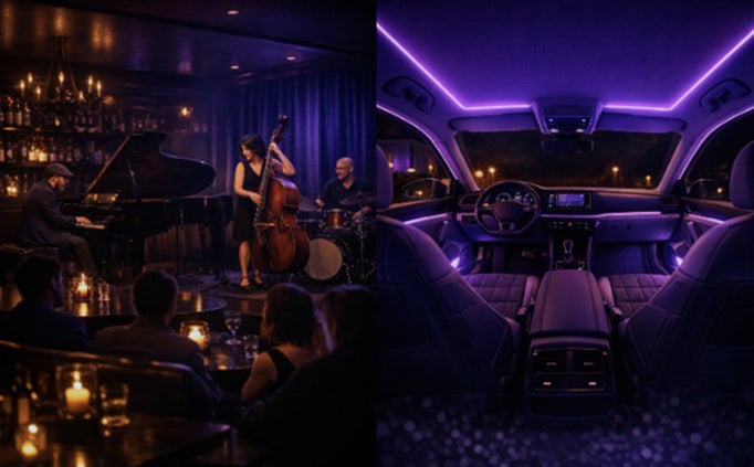 「Music:AI for Lighting」による音楽の曲調に合わせた車室内空間の演出のイメージ