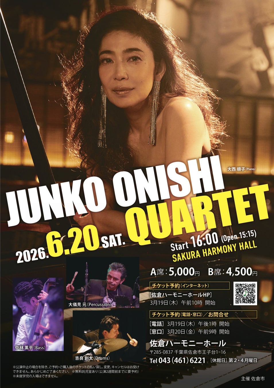 2026年6月20日(土)  大西順子カルテット 16:00開演 (佐倉ハーモニーホール)