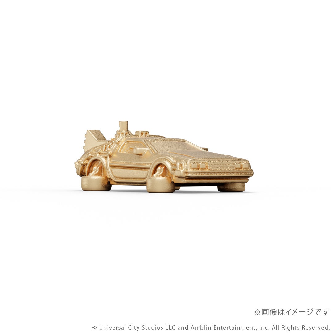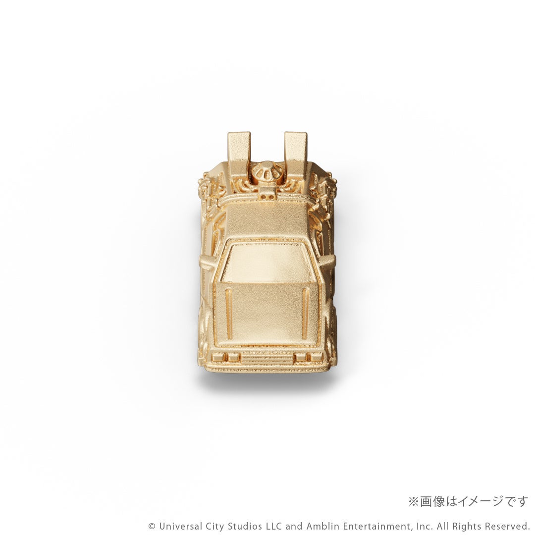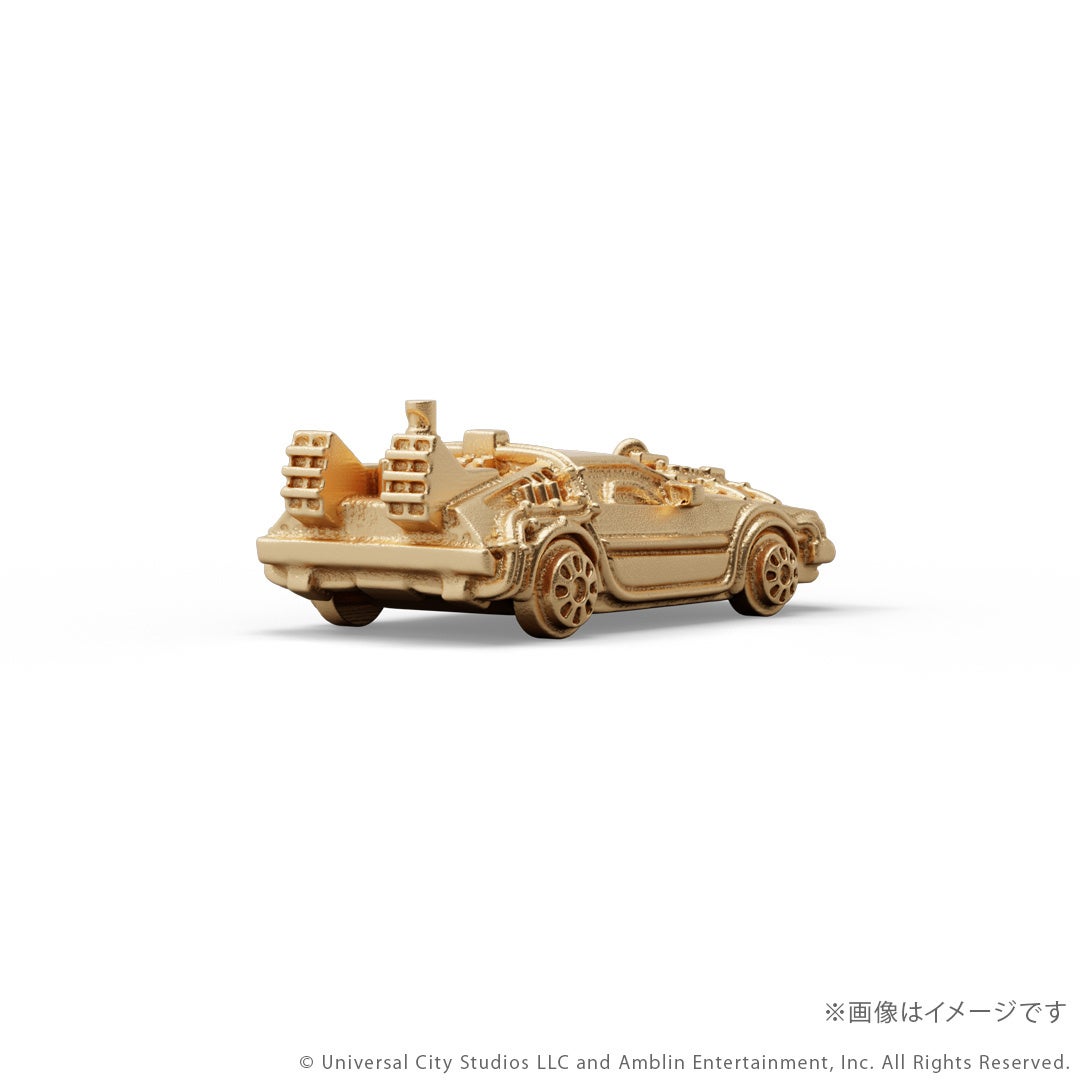 このたびの新作は、映画『バック・トゥ・ザ・フューチャー』シリーズとコラボレーションしたタイムマシンのミニフィギュアです。シリーズ3部作「Part1」「Part2」「Part3」それぞれの劇中に登場する「タイムマシン」を、ジュエリー職人が細部までこだわりK18イエローゴールドで再現しました。