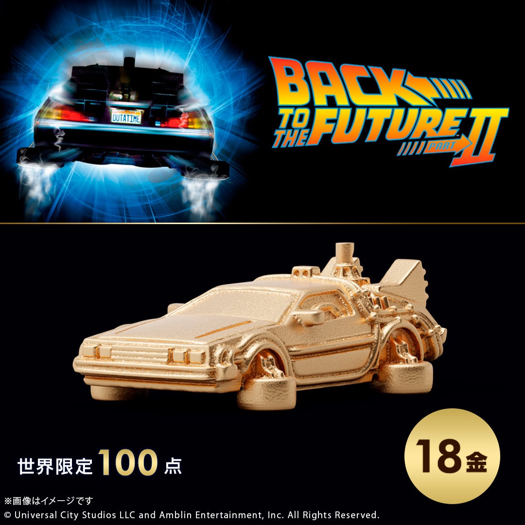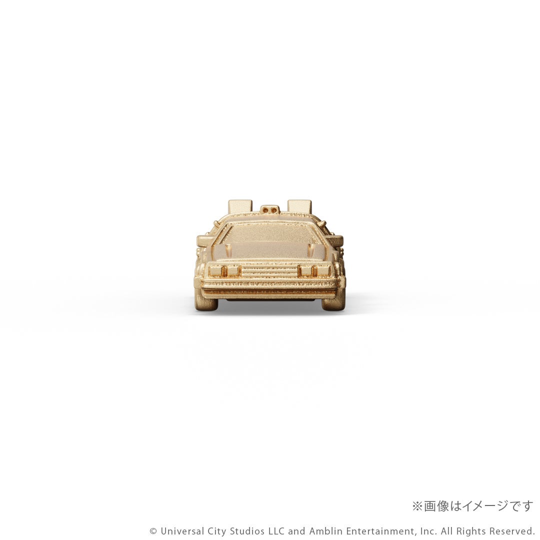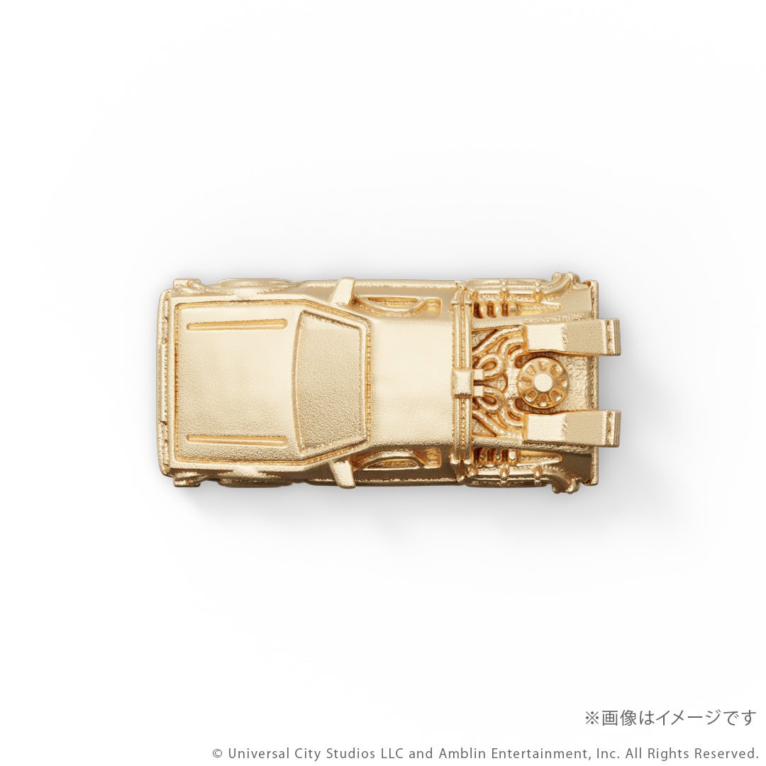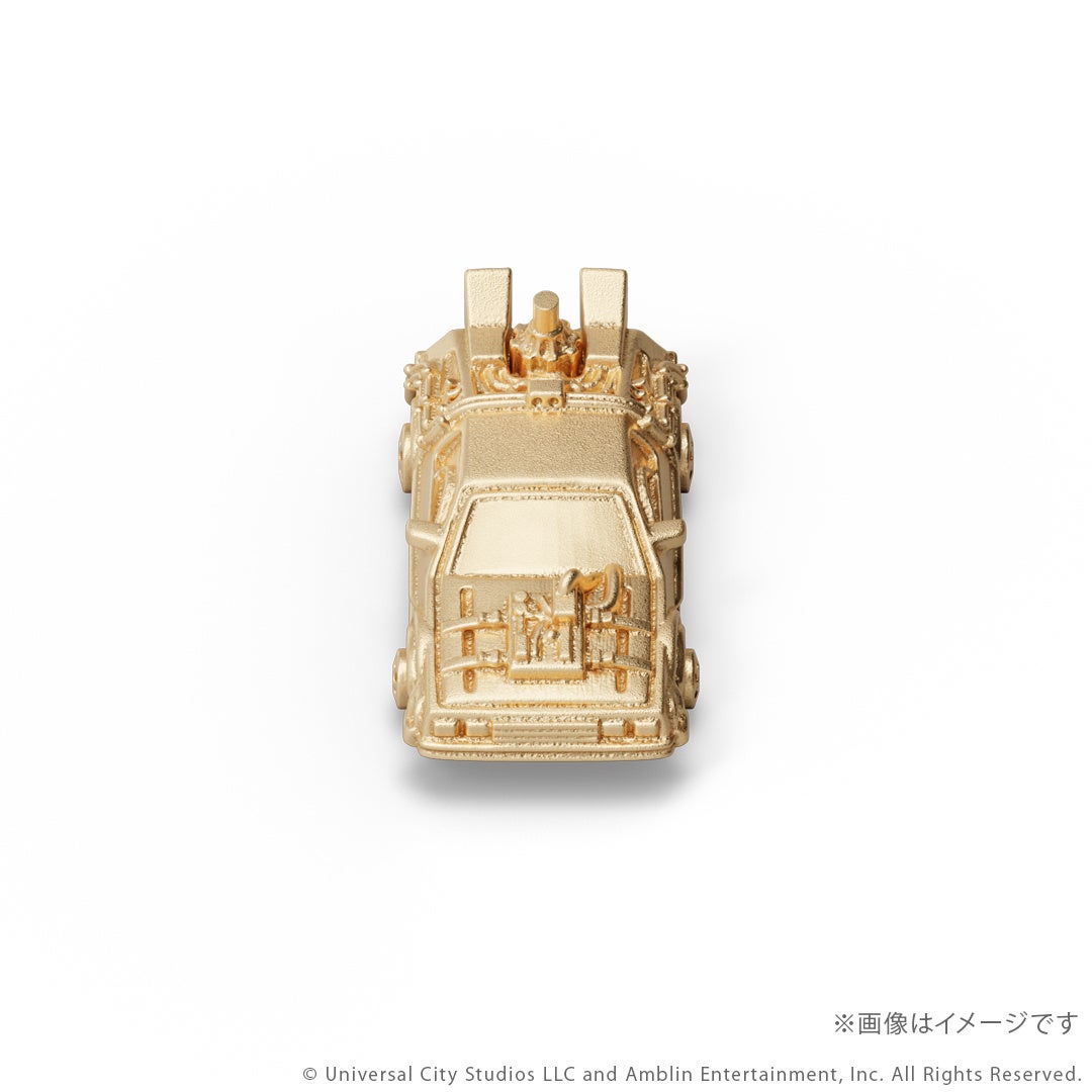 このたびの新作は、映画『バック・トゥ・ザ・フューチャー』シリーズとコラボレーションしたタイムマシンのミニフィギュアです。シリーズ3部作「Part1」「Part2」「Part3」それぞれの劇中に登場する「タイムマシン」を、ジュエリー職人が細部までこだわりK18イエローゴールドで再現しました。