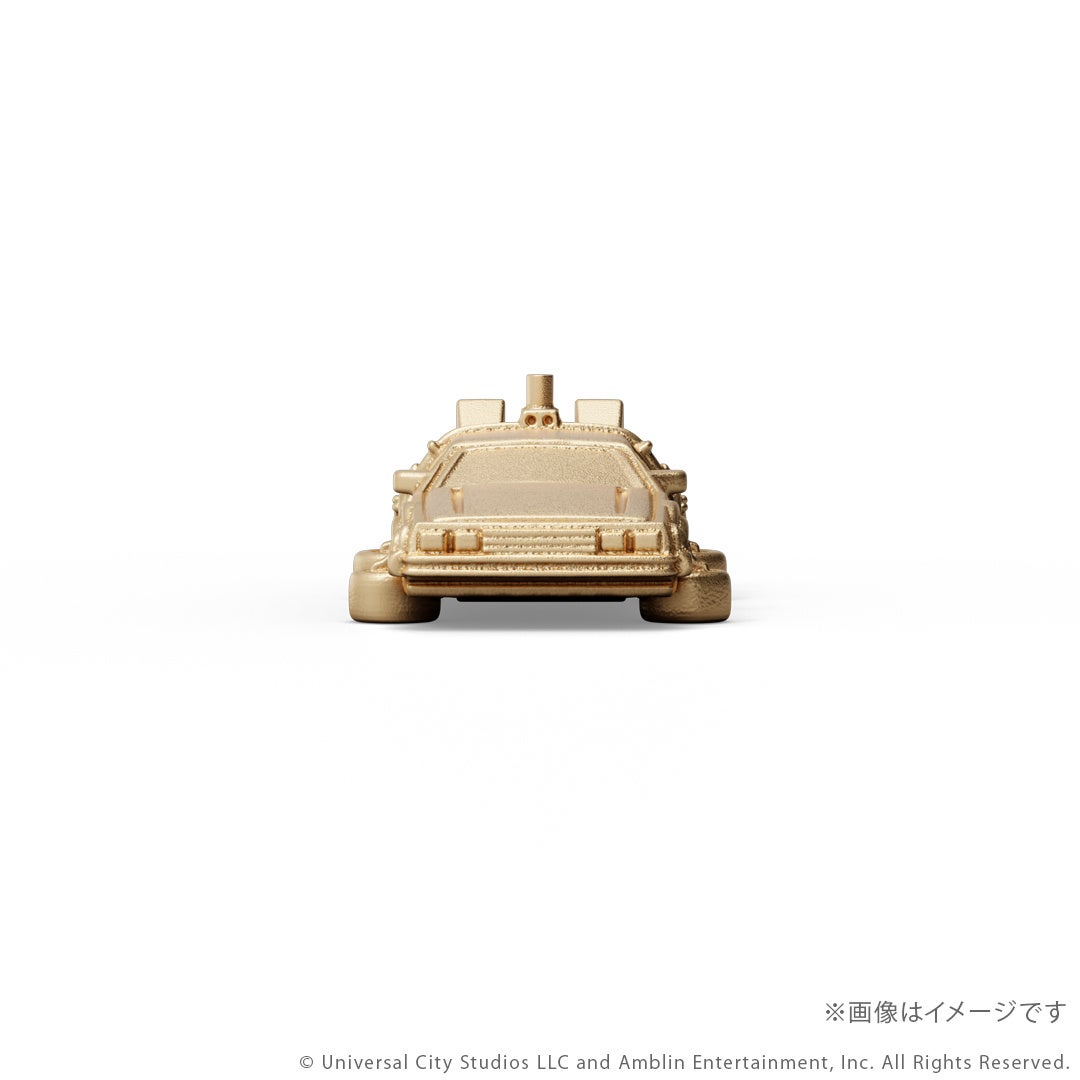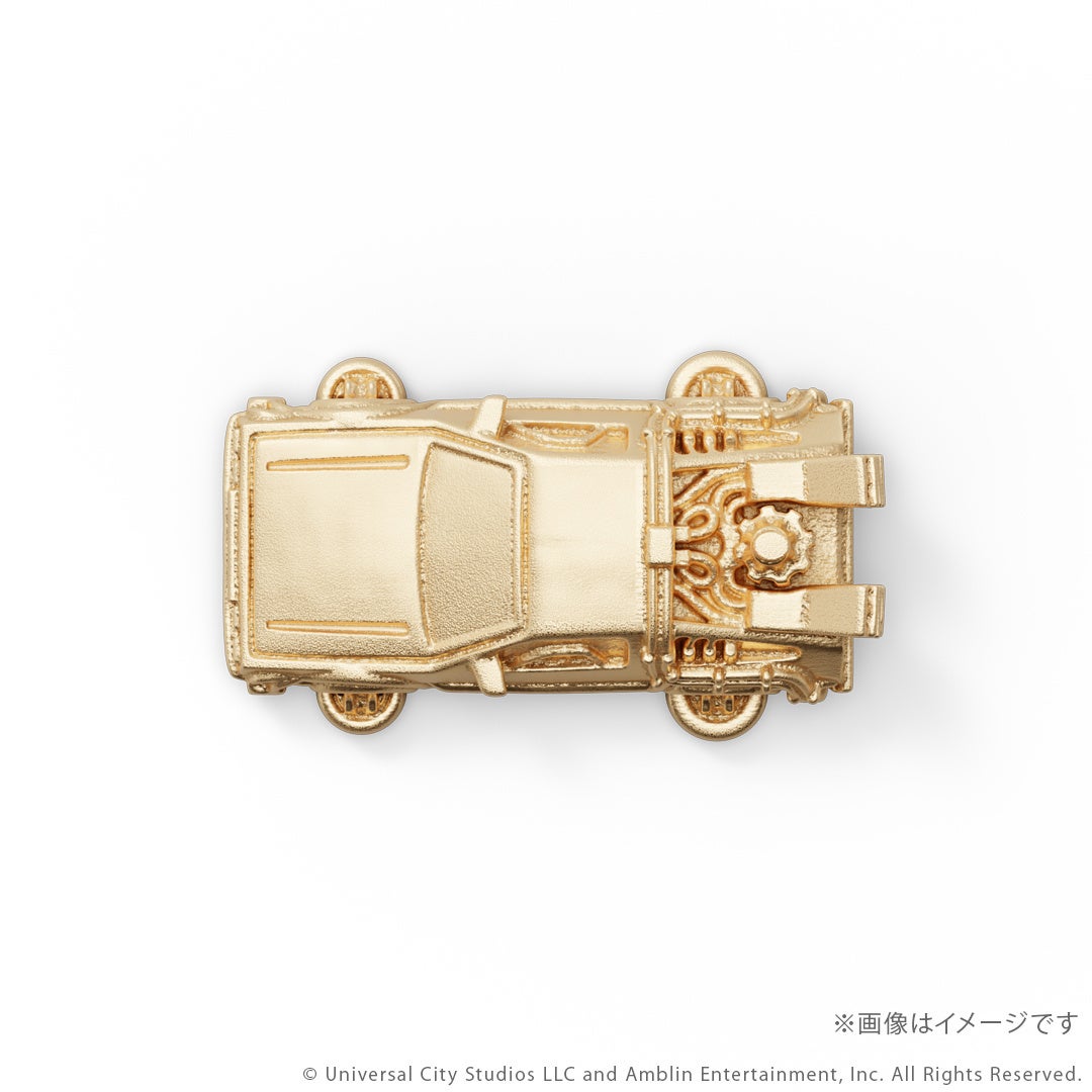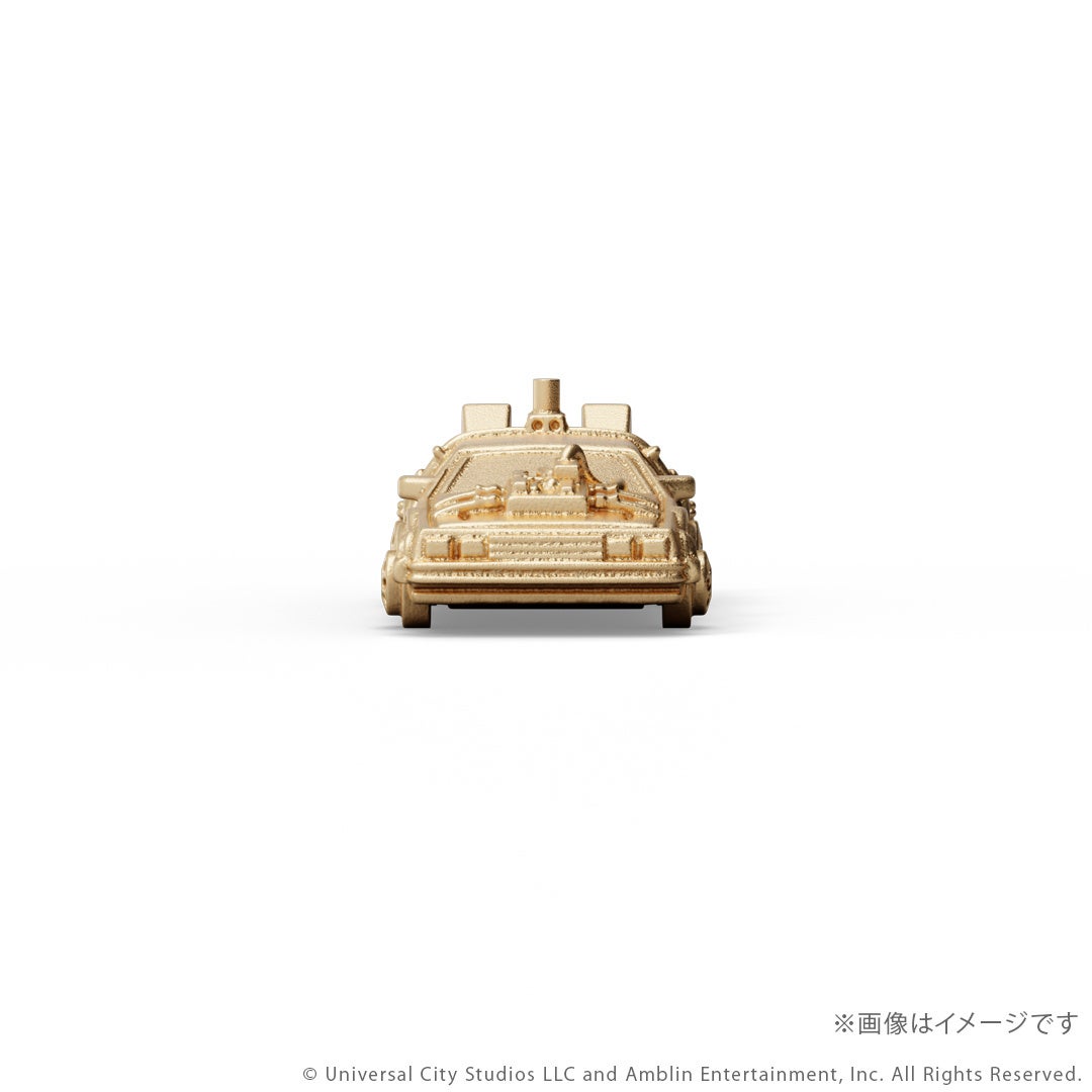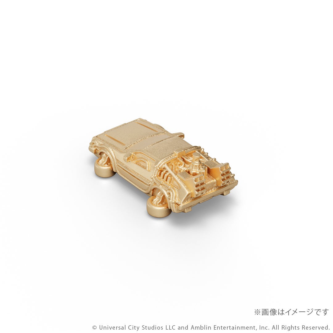 『バック・トゥ・ザ・フューチャー』シリーズに登場するタイムマシンをK18イエローゴールド製のミニチュアサイズで再現。