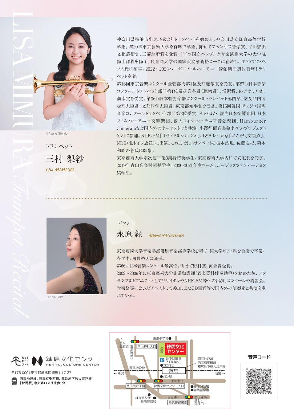 主催:練馬文化センター(公益財団法⼈練⾺区⽂化振興協会)03-3993-3311