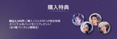 また、ポップアップストアにて税込3,300円ご購入ごとに、オリジナル缶バッジ(全4種)をランダムで1点プレゼントするノベルティ施策も実施いたします。