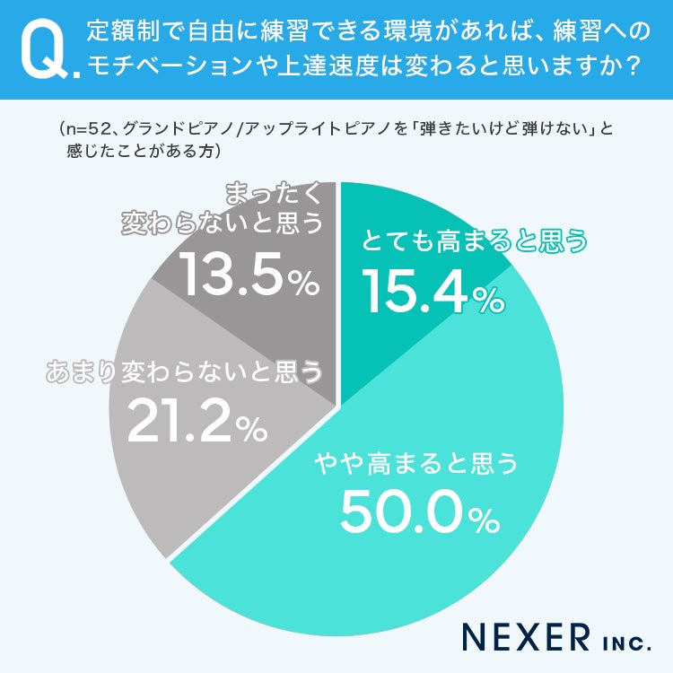 続いて、定額制で自由に練習できる環境があれば、練習へのモチベーションや上達速度は変わると思うかを聞いてみました。