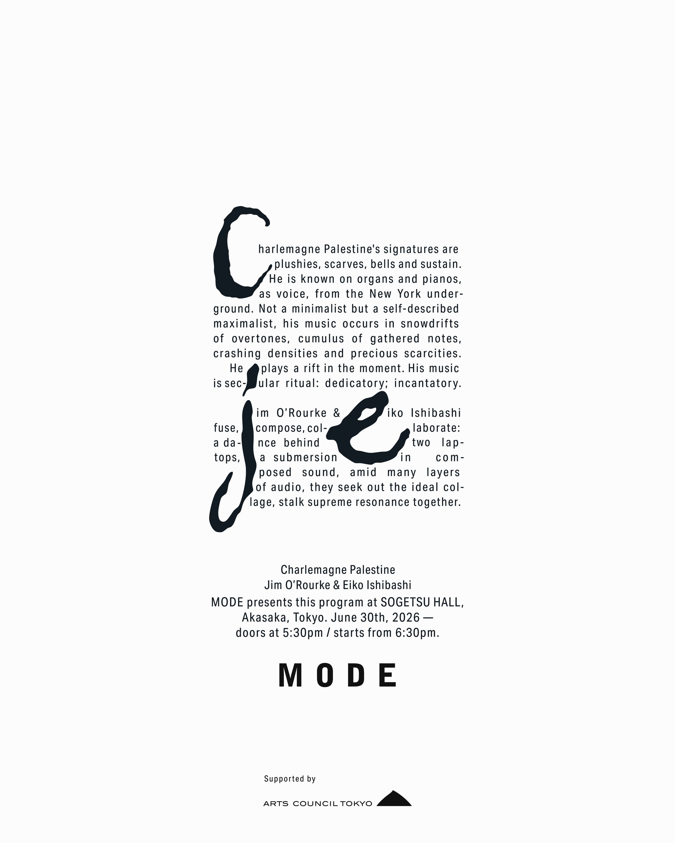 出演者:Charlemagne Palestine / Jim O’Rourke & Eiko Ishibashi