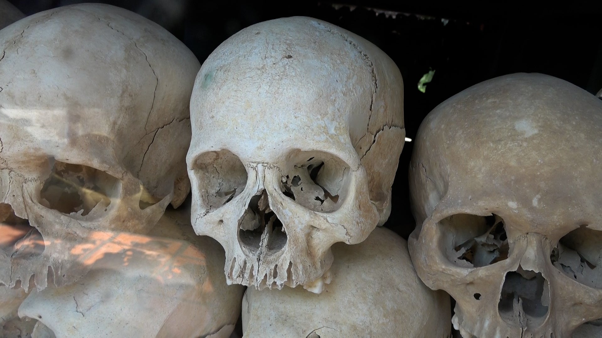 カンボジアの「キリング・フィールド」。1970年代、ポル・ポト政権下で大虐殺が行われた場所の一つで、処刑された人々の骨が保存されています。