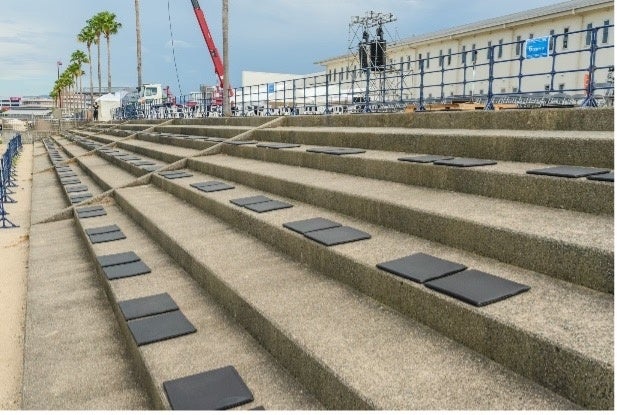 ビーチサイドの階段上から花火を見渡せる見晴らしのいいパイプ椅子席です。砂浜を歩くことなくご着席いただけ、老若男女どなたでも鑑賞のしやすいお席です。