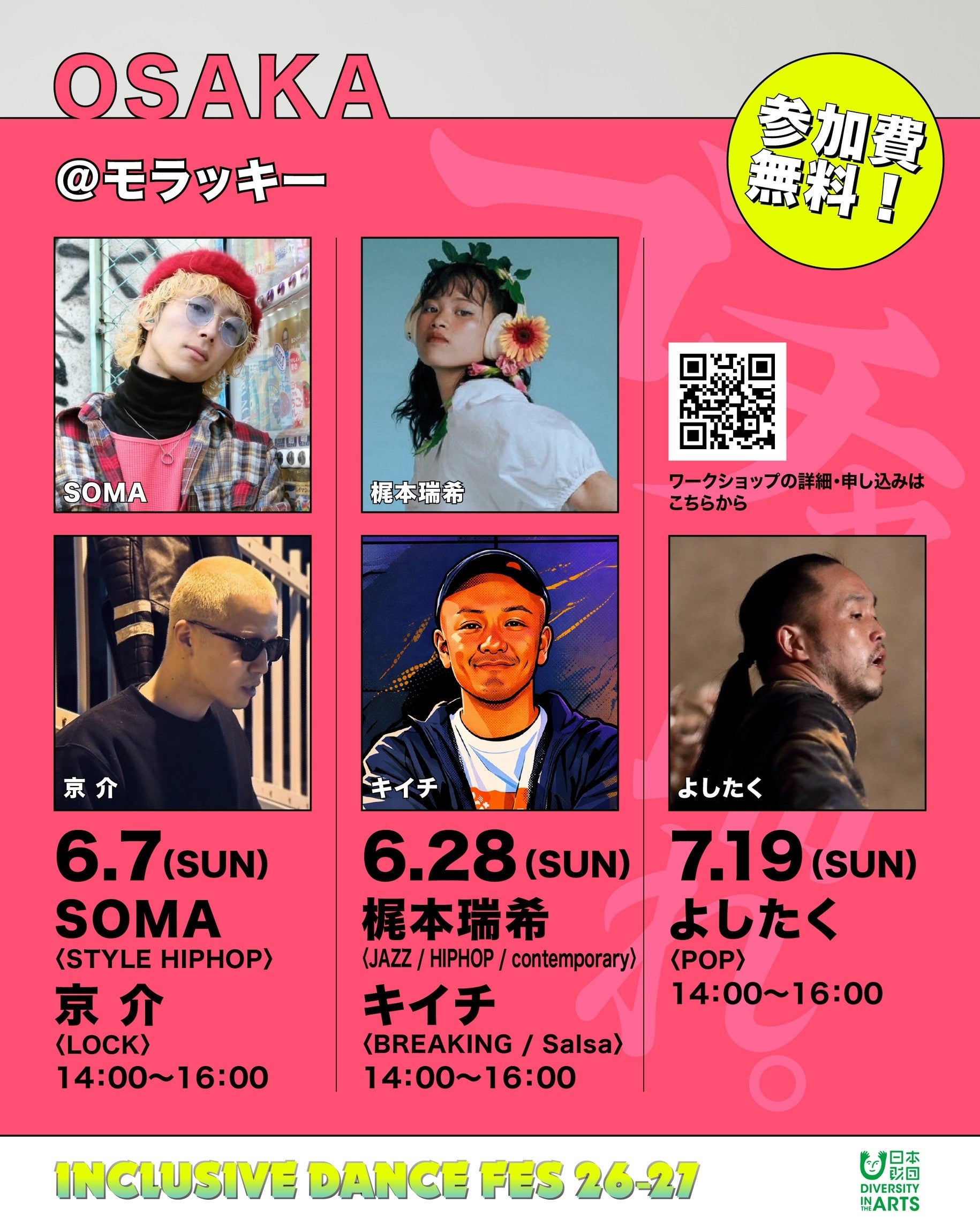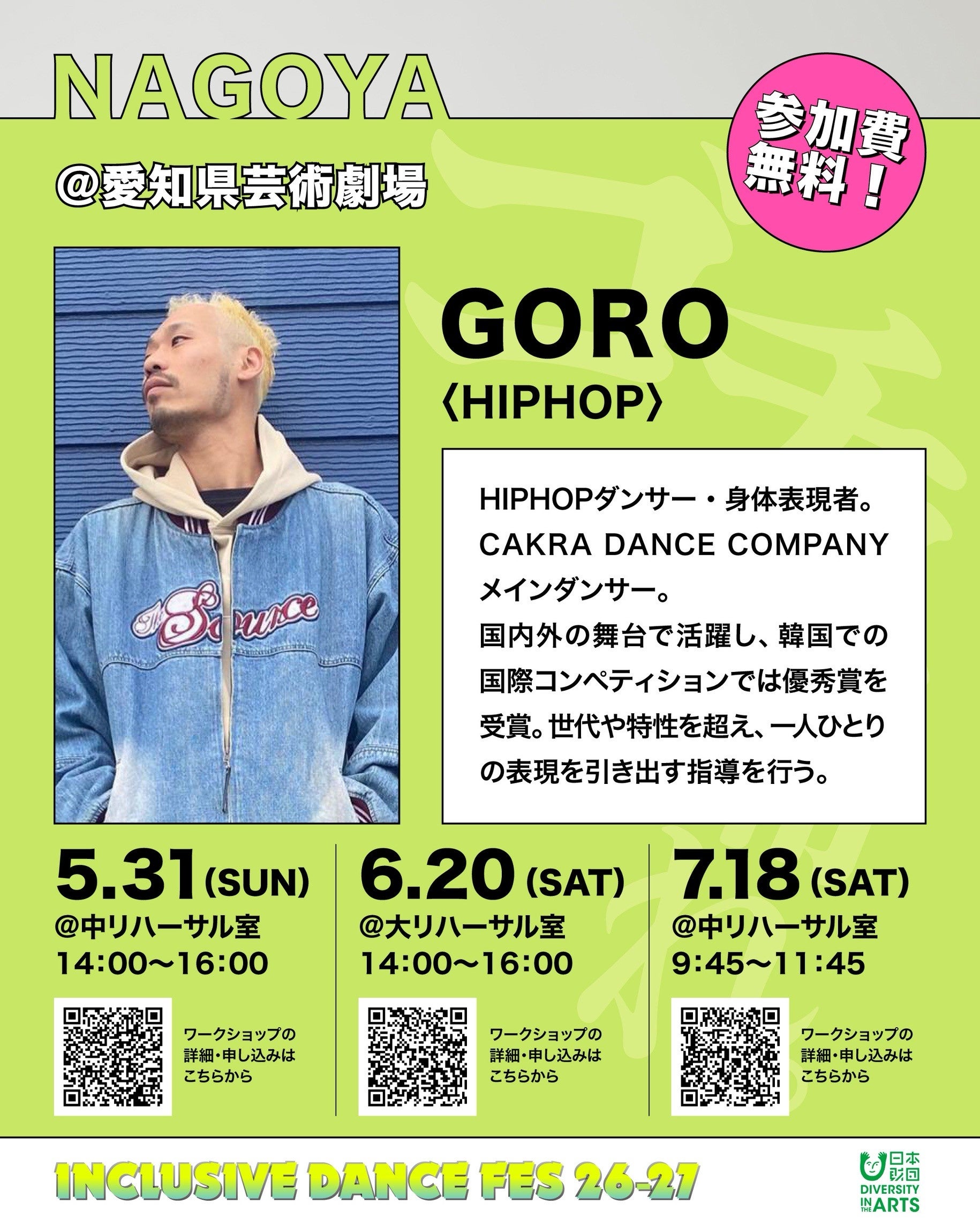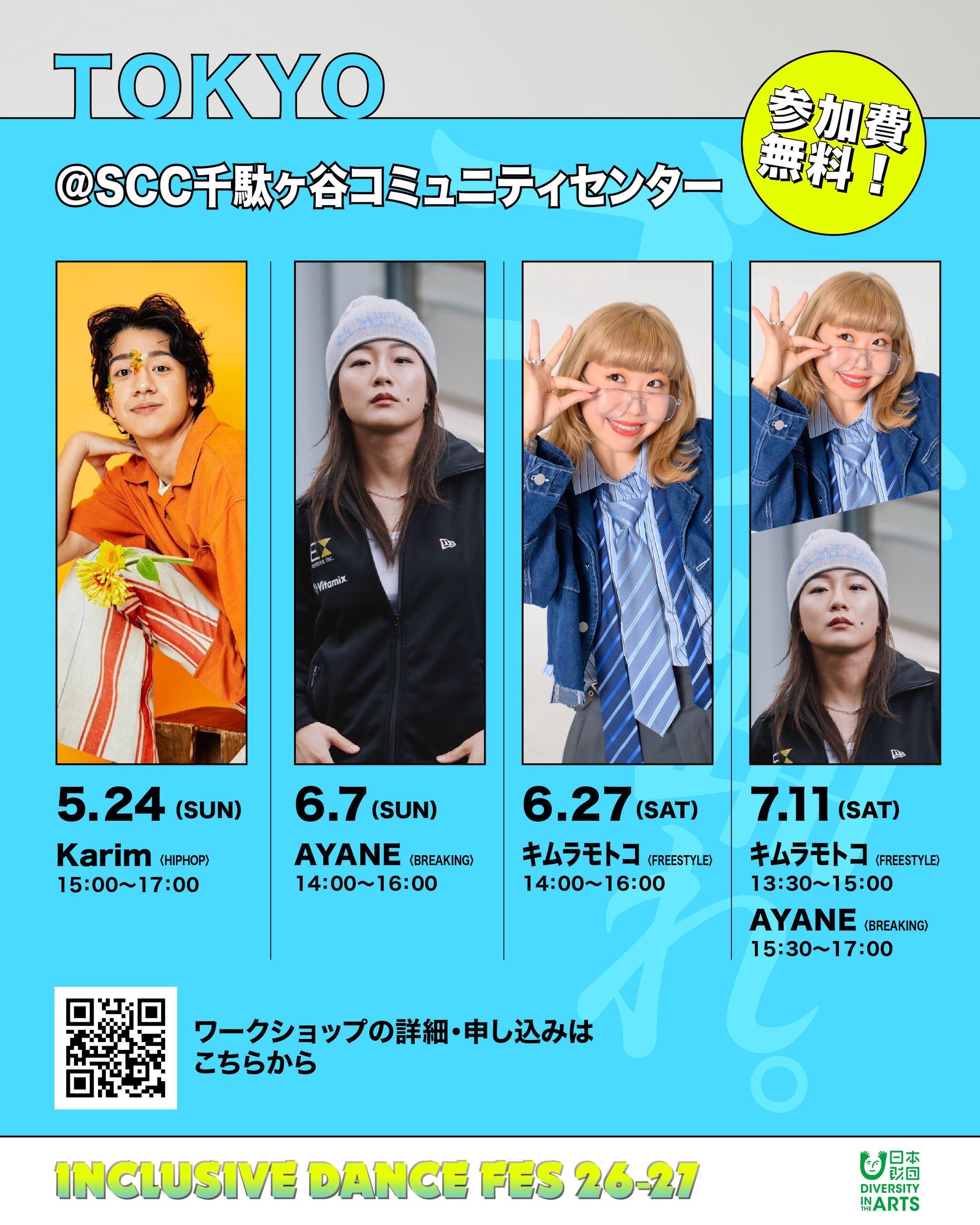 2027年1月30日・31日に渋谷で開催される「INCLUSIVE DANCE FES 26-27」の一環として、全国5大都市で行われる無料ワークショップの全講師、全日程のラインナップが発表となりました。