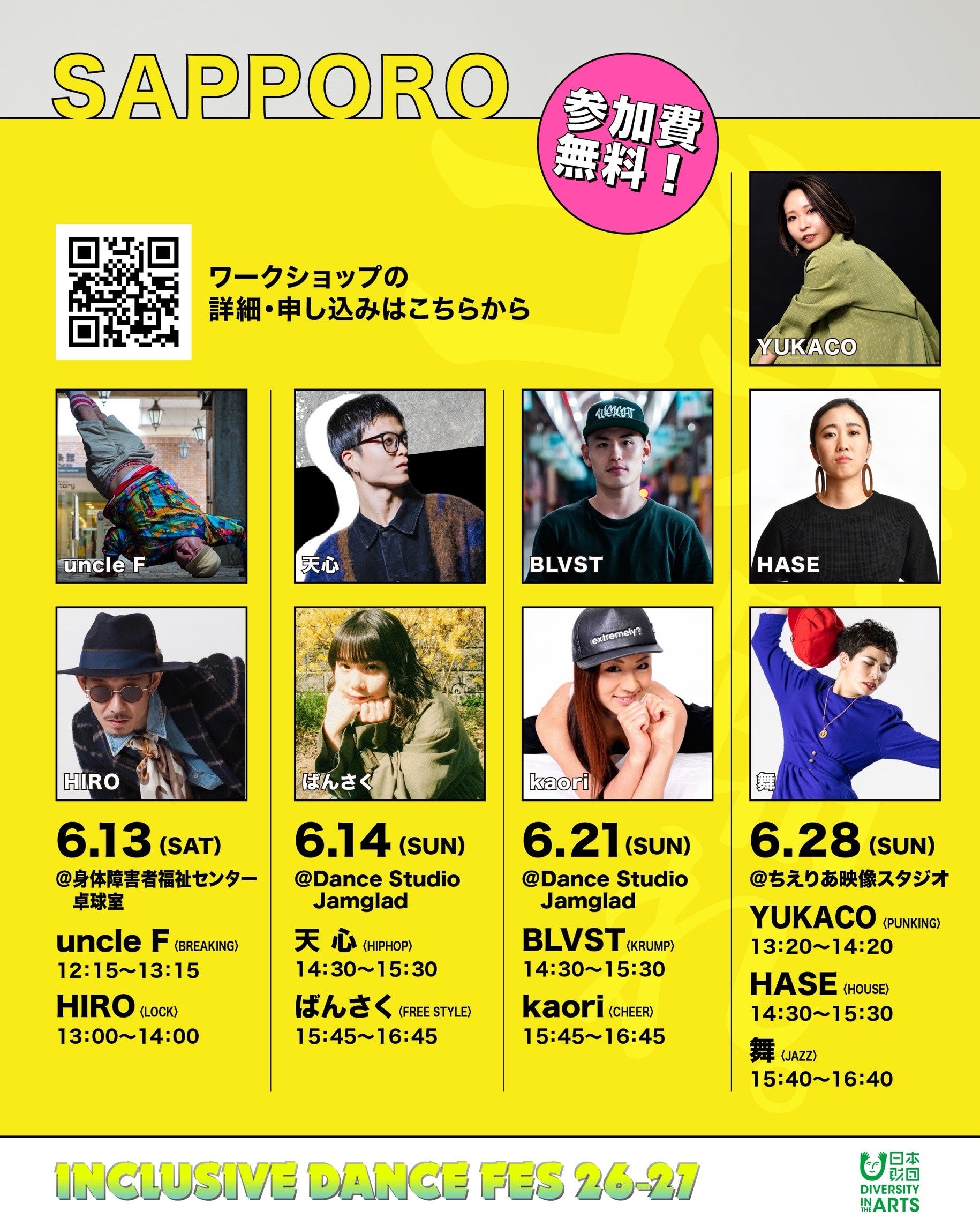 札幌ワークショップに関するお問い合わせ inclusivedancefes.sapporo@gmail.com