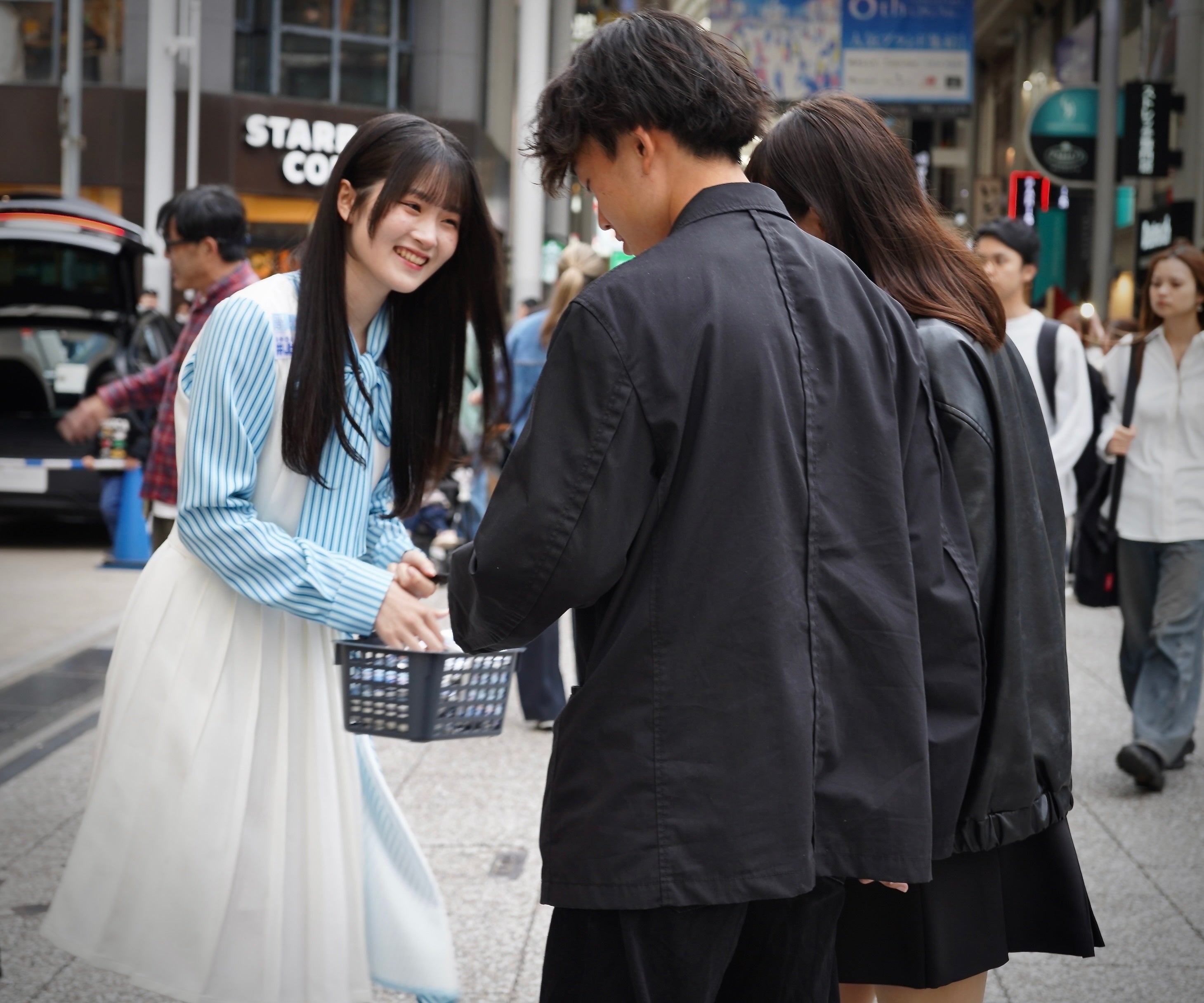 本日4月29日(水・祝)、4期研究生がSTU48広島劇場(広島CLUB QUATTRO)周辺の繁華街にサプライズで登場。ゴールデンウィーク初日となるこの日、STU48広島劇場で開催される連日公演や、ひろしまフラワーフェスティバルのステージイベント、さらに5月に東京・Kanadevia Hallで開催される9周年コンサートのPRを兼ねて、ティッシュ配りを実施した。