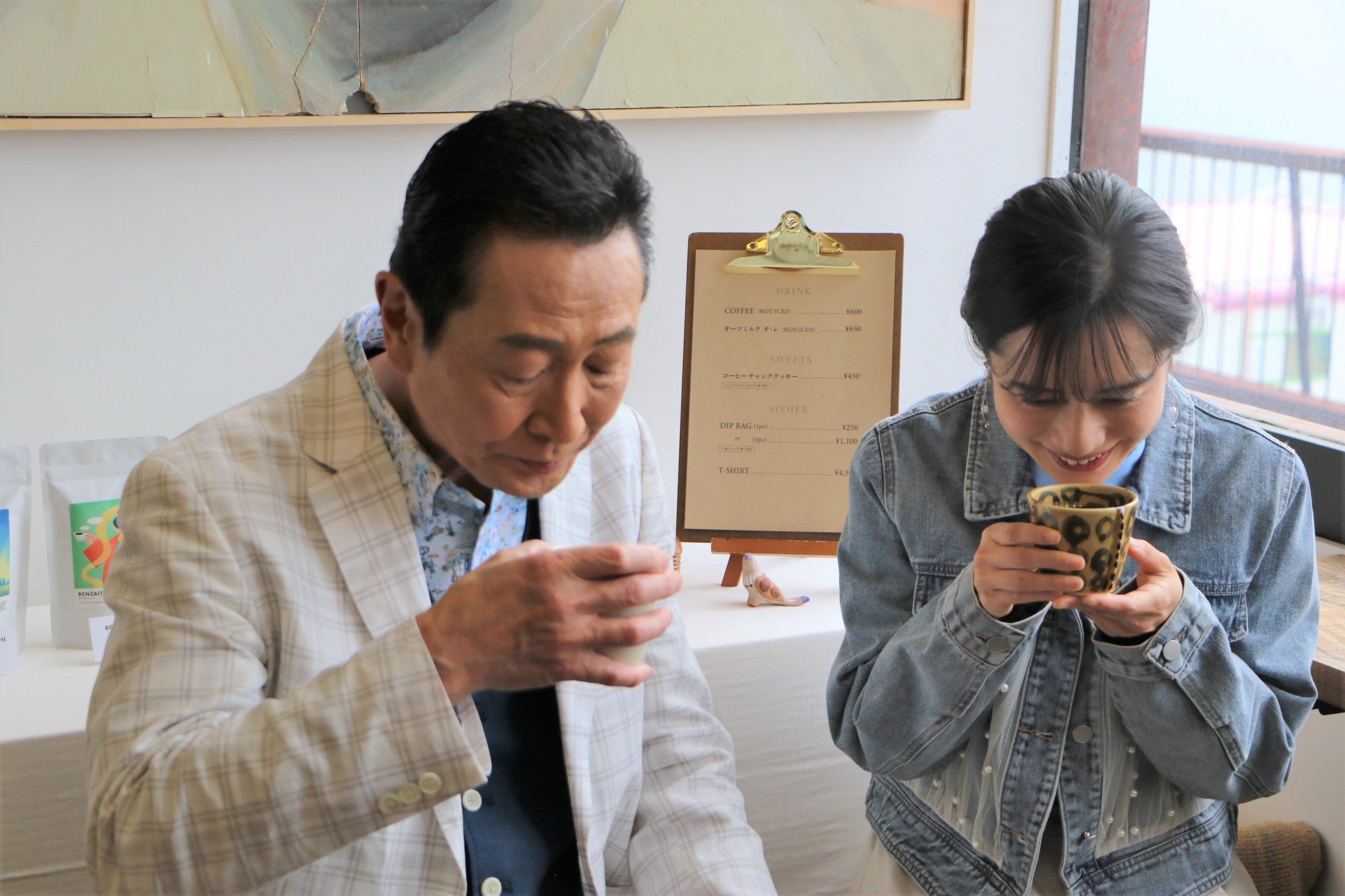 目的地のコーヒー店【GOLDEN GREEN COFFEE】に到着!店の奥にある窓は安治川に面しており、景色が素敵です!『夕凪ブレンド(HOT)』を味わいつつ、会社勤めをしながらコーヒーを焙煎から学んだという店主のお話を伺います。かっこいい大人がたむろしていた弁天町。今も、その魂は引き継がれているようです。