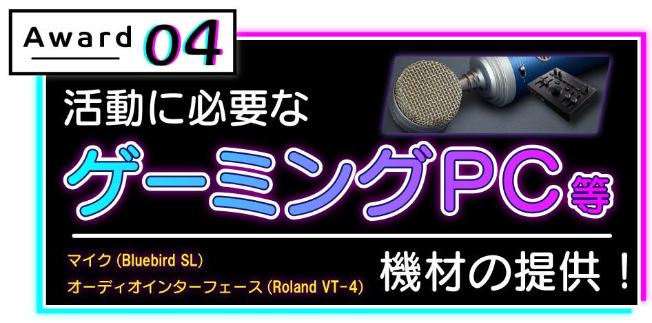 柾花音に続く期待のVirtual Artistを発掘するために、今回のオーディションの合格者には有名絵師のキャラクターデザインと機材提供はもちろんのこと、オリジナル楽曲制作、音楽配信サービスでの世界リリース、豪華なデビューライブイベントや有名VSingerとの楽曲コラボ、MV制作など、VSingerとして華々しくデビューしていただけます。