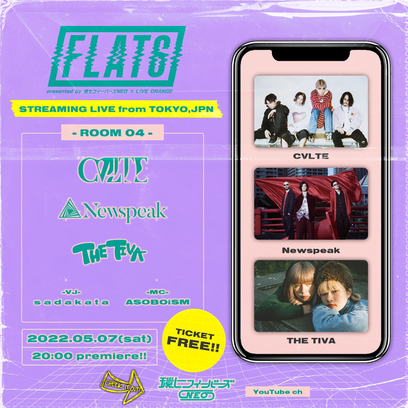 5月7日(土)20時公開となるROOM4には、CVLTE、Newspeak、そしてTHEティバが登場。