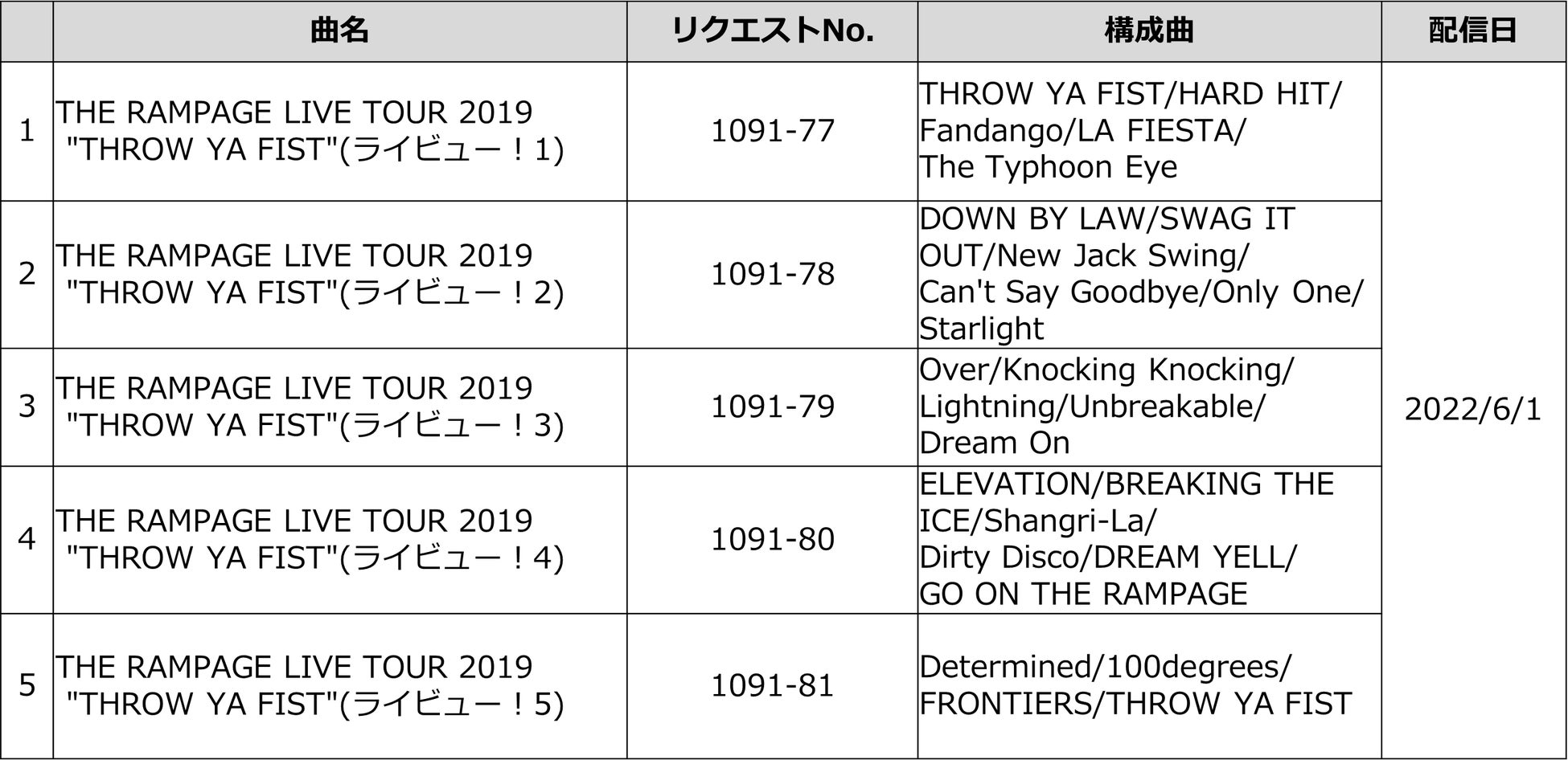 6月スタートの第10弾は、今年デビュー5周年を迎え、さらなる飛躍が期待されるTHE RAMPAGE from EXILE TRIBEに決定しました。2019年に全国13会場、28公演で開催した初のアリーナツアー『THE RAMPAGE LIVE TOUR 2019 “THROW YA FIST”』の映像を5ブロックに分けて、6月1日より期間限定で配信します。