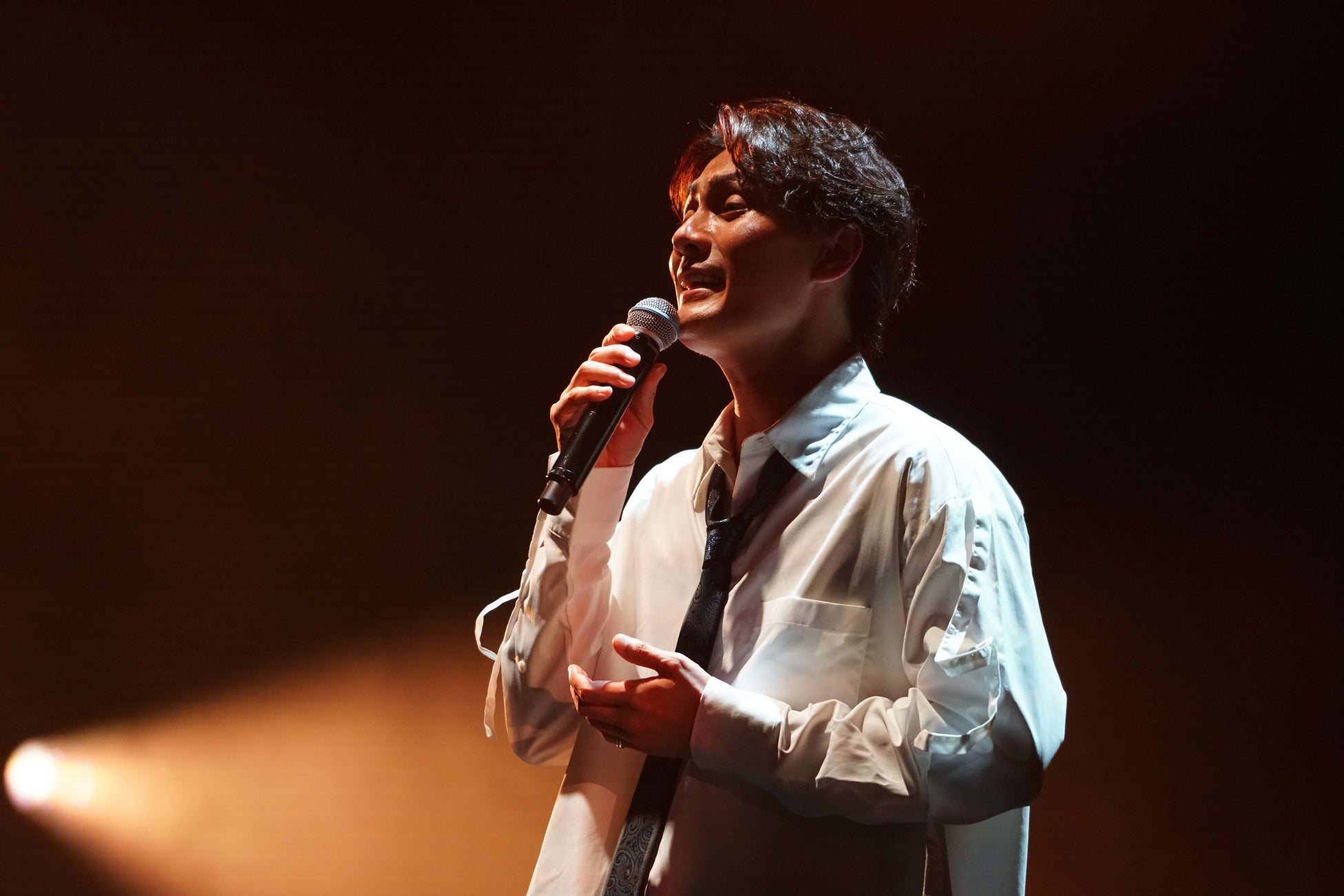 今回のコンサートは、加藤和樹&THE Sonics(Piano:吹野クワガタ Gt:田口慎二 Ba:川渕文雄 Dr:髭白健)の新しいバンド編成となり、オープニングでTHE Sonicsのメンバーが登場。モダンでジャジーなアレンジで「Hello」のインストが披露される。ミドルテンポの跳ねたリズムに吹野クワガタのピアノのメロディラインで初めて楽曲が「Hello」とわかったファンも多いだろう。大胆にアレンジされたサウンドがオープニングで繰り広げられるなか、1曲目の「東京ダイヤモンド」へ。ギターの裏打ちカッティングが印象的なアレンジのイントロが始まると、加藤和樹が白いシャツに黒ジャケットという大人っぽい衣装で登場。デビューミニアルバム「Rough Diamond」(2006年)に収録されている楽曲だが、同期なしの“裸の”ネイキッドなサウンド、音数を削ぎ落とした立体的な音像とともに、加藤和樹の進化した楽曲となり序盤からオーディエンスを心地のいい空間へと引き込んでいった。加藤和樹は緊張感を持ちながらもファンに新しいサウンドを表現することを嬉しそうに噛み締めていた。