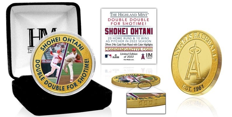 今回、大谷翔平選手のベーブ・ルース以来となる104年振り 2桁勝利&2桁本塁打を記念し、 Highland Mint社製の「フォトミント」「ゴールドカラーコイン」をJ SPORTSオンラインショップにて各2022個限定で発売いたします。両デザインには大谷選手の投打の写真ほか、フォトミントには今シーズンの記録達成までの投打の軌跡が刻まれており、大谷翔平選手の活躍を象徴する商品となっております。