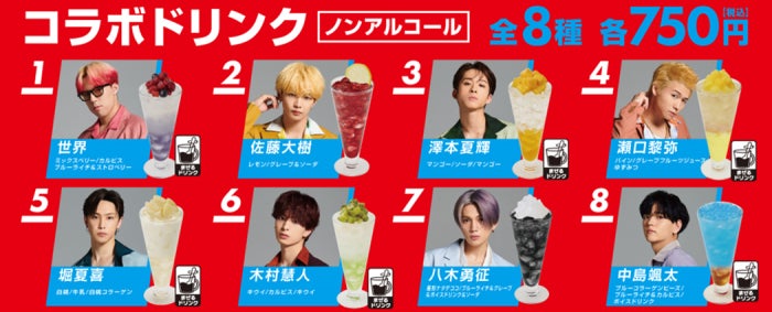 コラボドリンクには、「FANTASTICS from EXILE TRIBE」のメンバーをイメージした全8種をご用意します。注文特典として、コラボドリンク1品ご注文につき、オリジナルポストカードを全9種の中からランダムで1枚プレゼントします。さらに、カラオケ受付時に「FANTASTICS from EXILE TRIBE」公式YouTubeチャンネルの登録済み画面をご提示いただいた方に、オリジナル新譜本風ポストカードを1枚プレゼントします。