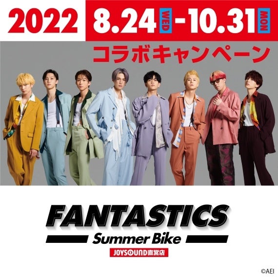株式会社エクシングの子会社で、全国にカラオケ店舗を展開する株式会社スタンダード(本社:東京都港区、代表取締役社長:米田洋一)は、2022年8月24日(水)から2022年10月31日(月)までの期間中、「FANTASTICS from EXILE TRIBE×JOYSOUND直営店コラボキャンペーン」と題し、JOYSOUND渋谷南口駅前店(東京)・JOYSOUNDなんば戎橋店(大阪)にカラオケコラボルームをオープン!また、JOYSOUND直営店30店舗にて、オリジナルポストカード付きコラボドリンクを展開します。