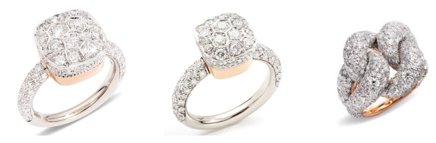 リング(左から):「ヌード」K18WG×K18RG×ダイヤモンド 1,694,000円、1,199,000円